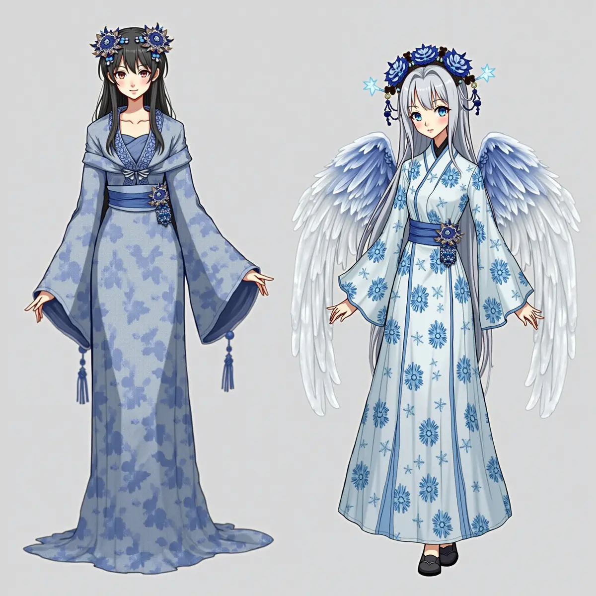 以阿克苏艾德莱斯绸的色彩和纹样为服饰主要元素,头戴具有当地特色的饰品;第二个人物结合浙江青瓷的淡雅色泽和优美造型,设计出一位身着青瓷质感长裙的仙子形象