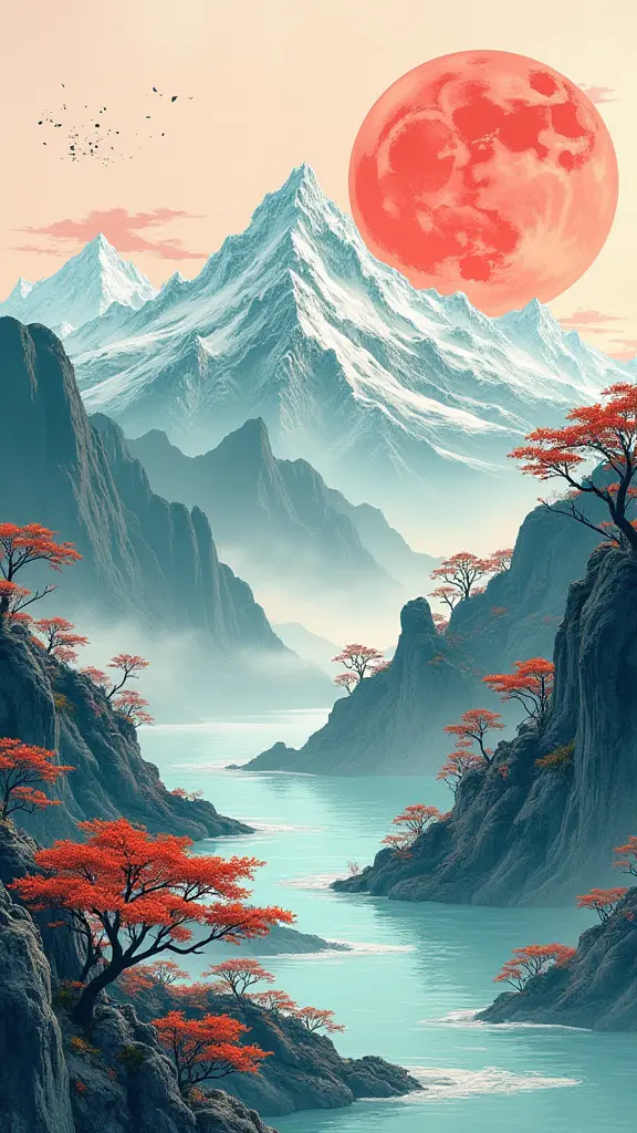 以抽象画的钱塘江潮水线条为骨架潮头卷起形成天山雪峰的轮廓潮水的纹理中,融入艾德莱丝绸的波普是色块在潮水或山峰的间隙中点缀简化版的良渚玉棕纹和龟兹壁画中的花卉纹,背景可采用微妙的青瓷冰裂纹底纹,增加质感。色彩主色调为青瓷粉晶与艾德莱丝绸的亮色碰撞,沉稳中见活力设计一款图案