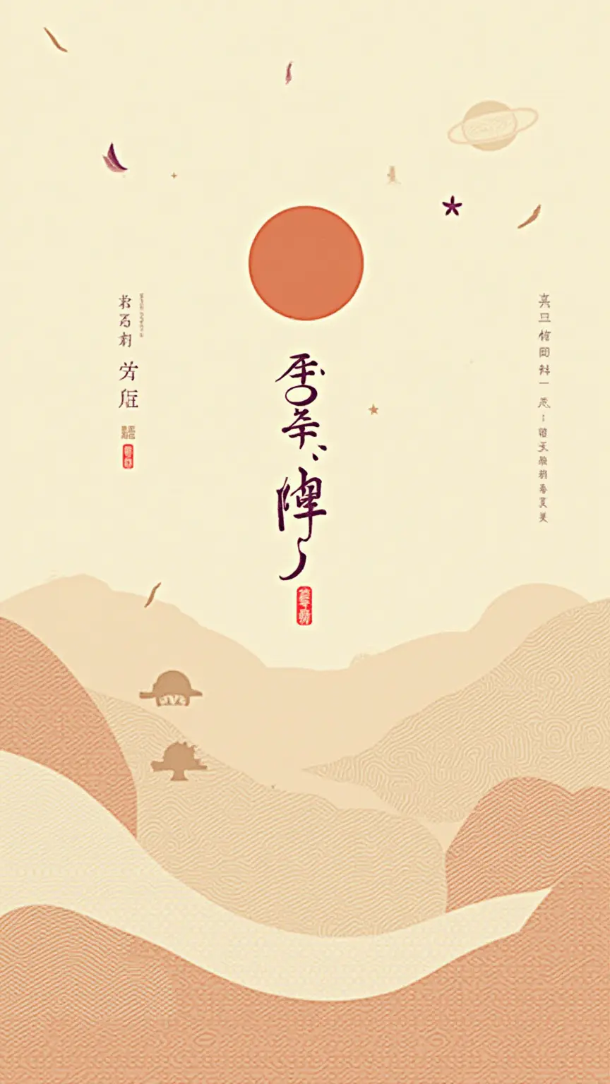 现代简约风海报,以几何分割布局:上半部分用江南水墨晕染出茶园、丝绸的柔和线条,下半部分用大漠沙色勾勒出葡萄架、大馕的硬朗轮廓,中间用渐变光带衔接,嵌入“青瓷×土陶”“木雕×乐器”“黄酒×慕萨莱斯”的联名图标,色彩取青瓷白、艾德莱斯紫、黄酒琥珀色,字体采用粗体无衬线与维吾尔族花体结合