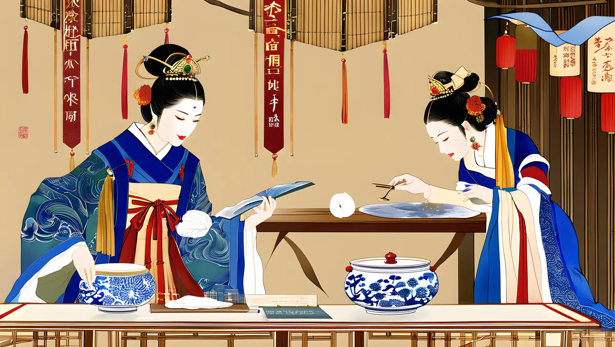 作品介绍:这幅画以浙江传统汉服为载体,融入浙江丝绸面料、青瓷器具元素,搭配阿克苏维吾尔族纹样装饰(如服饰细节的几何纹),展现浙阿非遗工艺在生活场景中的融合——左侧人物手持的书卷暗合浙江文脉,桌上青瓷与蓝纹器具...查看更多