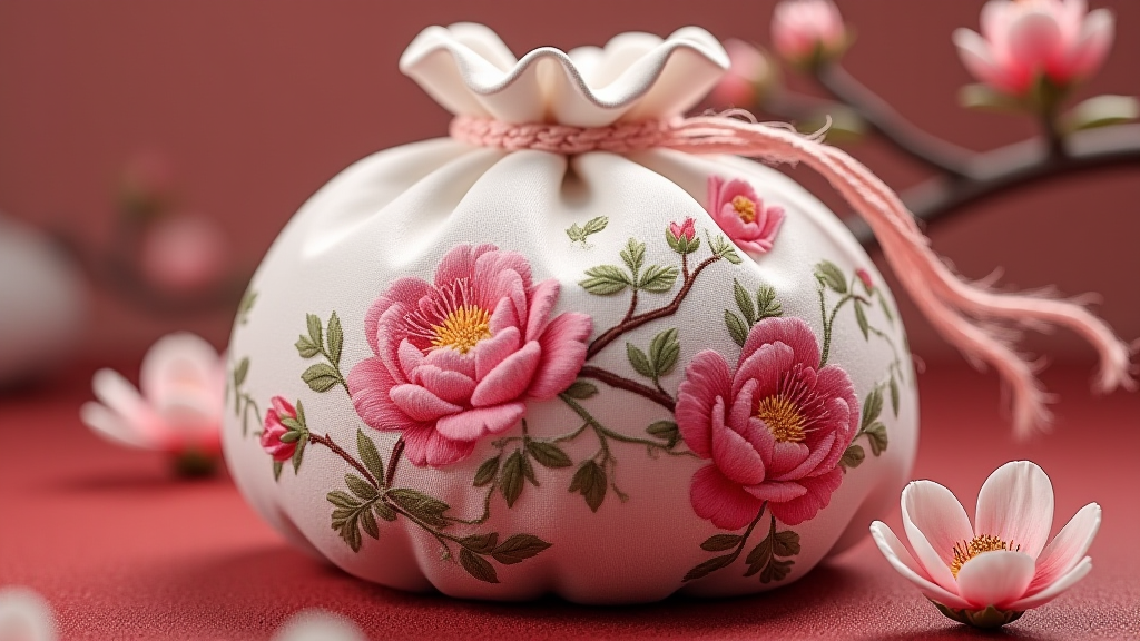 创作一款融合浙江与阿克苏花卉元素的香囊,此香囊以浙江杭州桂花与阿克苏玫瑰为设计灵感,正面绣制浙江桂花绽放、香气袭人的图案;背面则描绘阿克苏玫瑰盛开、娇艳欲滴的景象。香囊内部填充浙江龙井茶香与阿克苏沙棘果香混合的香料,外部采用浙江丝绸与阿克苏棉布相结合的材质,整体既散发两地花卉的独特芬芳,又体现传统香囊文化的精致韵味。
