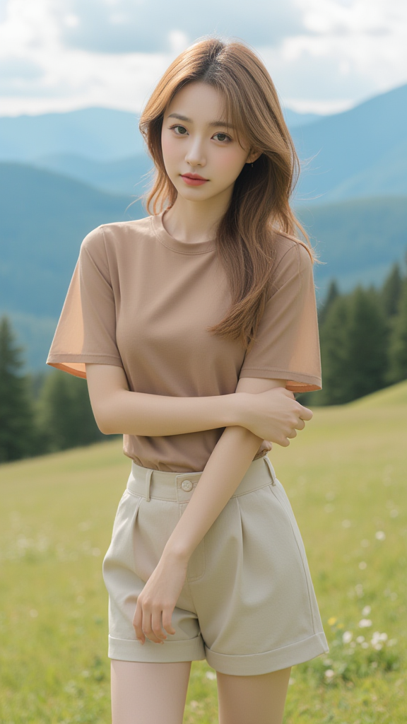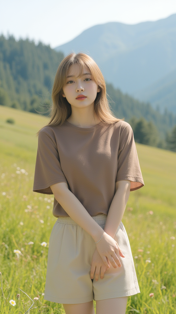 卡其色T恤女孩
