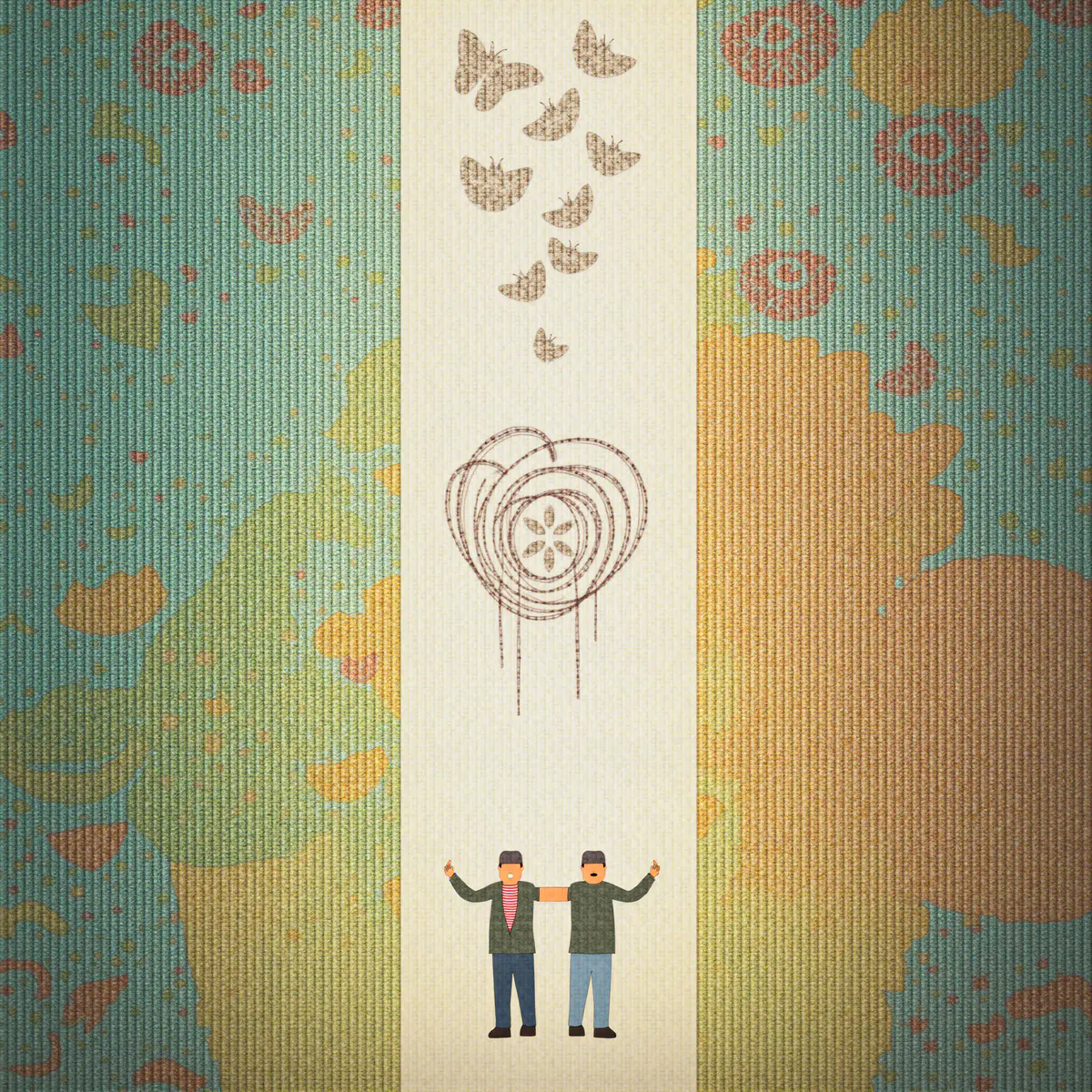 **象征元素:** 两只代表两地工匠的手在画卷上方协作牵引丝线。几只翅膀纹样融合了青瓷与艾德莱斯元素的蝴蝶,从画卷中翩然飞出。