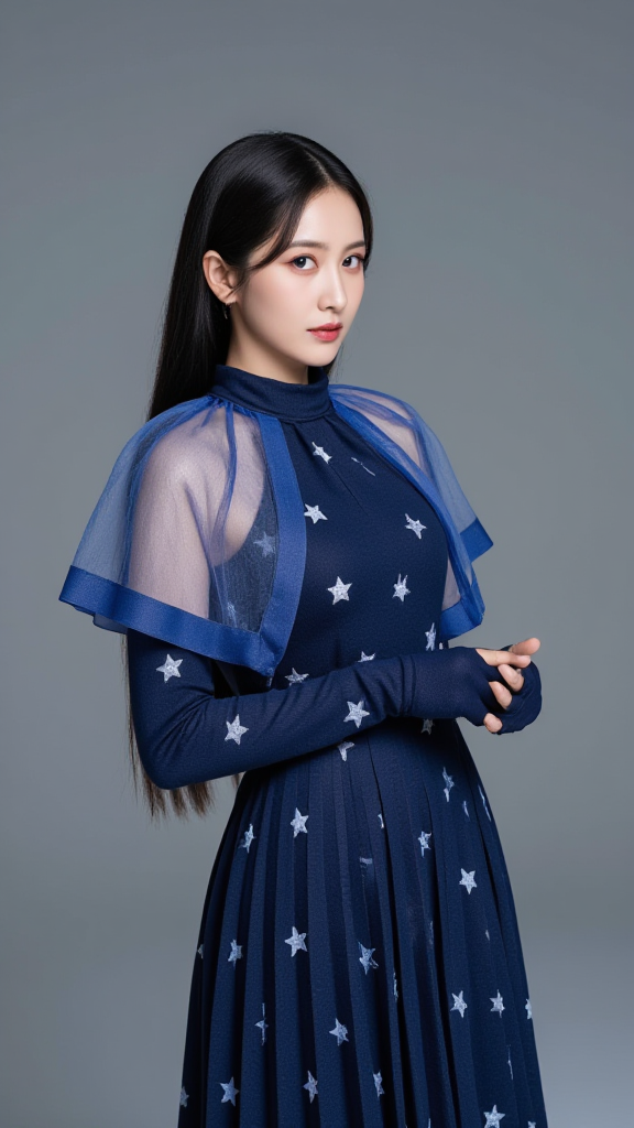 蓝色裙子女孩