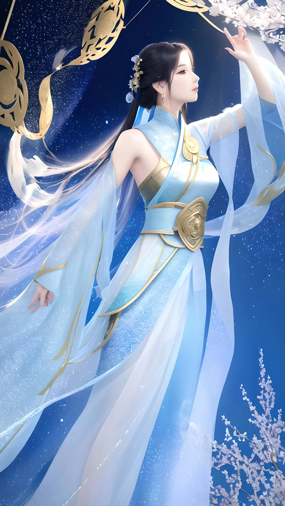 文化交融数字走廊关键词:新疆艾德莱斯绸的流动波点纹样 + 浙江青瓷的冰裂纹肌理,金色数字数据流如纽带缠绕交织,串联起两地非遗符号 —— 新疆木卡姆乐器轮廓、浙江越剧水袖剪影,全息投影悬浮呈现艾德莱斯绸织造、青瓷拉坯的动态过程,蓝白为主色调叠加鎏金高光,丝绸光泽与瓷釉质感交融,流光溢彩中带有粒子消散特效,背景是抽象化的浙阿地标线稿(杭州钱江新城、喀什高台民居),超高清细节,抽象科技美学风格,画面兼具柔软质感与未来冷峻感。