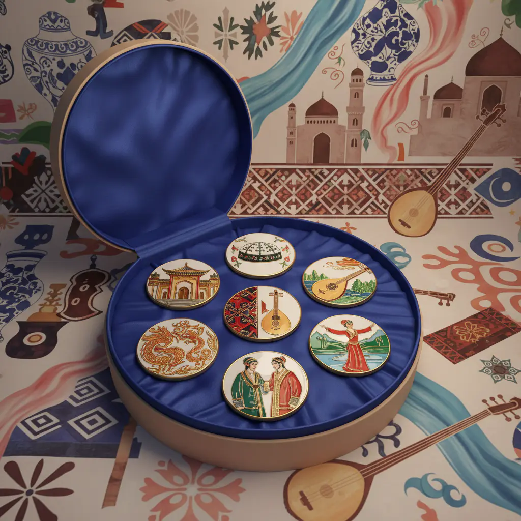 这组徽章礼盒以“浙阿文化共生”为核心,把江南宋韵与西域风情,凝在7枚徽章里,是文化伴手礼,更是山海情谊的具象表达。将浙江的龙纹、传统建筑,与阿克苏的民族乐器、艾德莱斯绸纹样、龟兹建筑等文化符号融于方寸之间——...查看更多