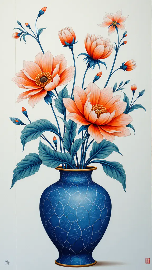 以浙江青瓷冰裂纹的雅致与阿克苏柯尔克孜族刺绣的灵动为核心,青蓝底色承载千年瓷艺底蕴,暖橙绣纹传递西域民俗温度。茶叶叶脉的巧妙点缀,串联起浙阿物产脉络,工笔细腻的笔触让传统纹样焕发新生,适配家居装饰,兼具文化质...查看更多
