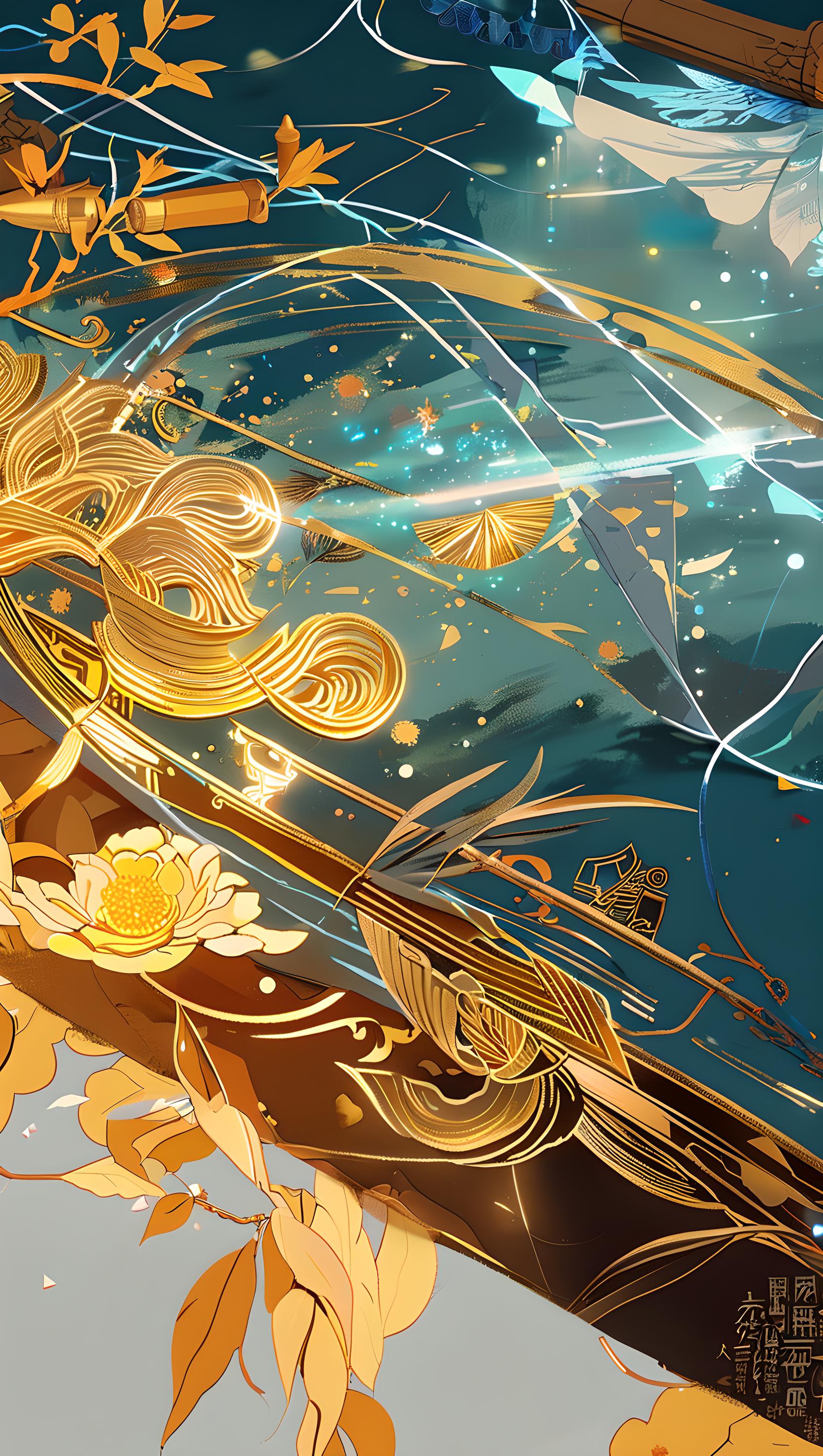 超高清 8K,300DPI,赛博朋克 + 非遗融合风格,强烈光影对比,主题为却日库木麦西热甫的浙阿共创未来化表达。画面中心是麦西热甫舞者的抽象发光剪影,暖金色线条勾勒轮廓,融合西域奔放与江南柔美姿态,身体嵌入青色丝绸数据流。周围漂浮解构后的非遗符号:热瓦甫琴弦变东阳木雕雕花线条,花毡纹样变全息投影几何块,黄酒坛变未来感容器,慕萨莱斯酒液变流动彩色粒子。背景是赛博胡杨林,树干投射龙泉青瓷冰裂纹全息影像,地面是帕拉孜纺织与数字电路混合纹理。右下角悬浮圆形‘共创终端’,左侧输入浙江非遗数据(石雕、丝绸、茶叶符号),右侧输入阿克苏非遗数据(刺绣、铜器、木卡姆符号),中间输出发光的麦西热甫共生符号。色彩方案:赛博蓝 + 鎏金 + 荧光红点缀,传统元素赋予科技质感(刺绣 = 发光电路,花毡 = 全息投影)。中心聚焦构图,顶部未来感字体‘却日库木麦西热甫’,底部英文‘Zhejiang-Aksu Intangible Cultural Heritage Co-creation’,角落嵌入科技感赛事 LOGO 变体。细节要求:数据流流畅自然,全息投影有透明质感,光影反射真实,无背景透明 PNG,兼顾科幻感与非遗辨识度