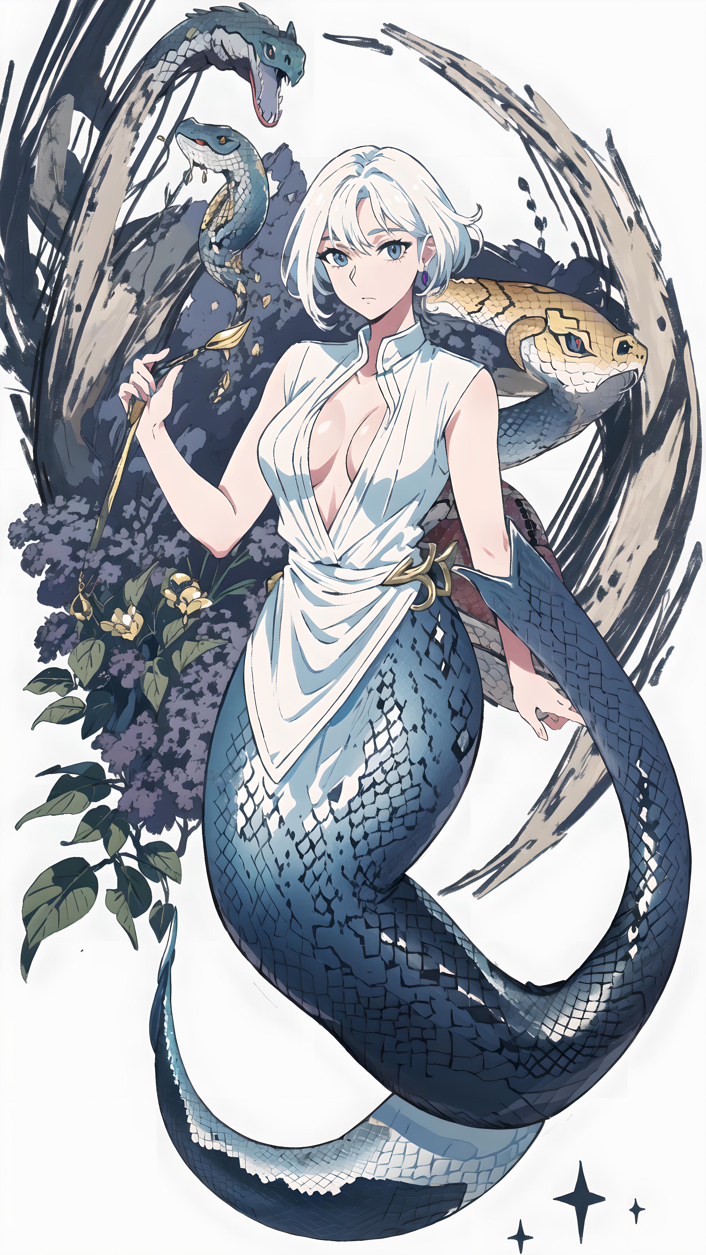 男性风格美艳蛇女美女蛇女妖女子面孔,插画