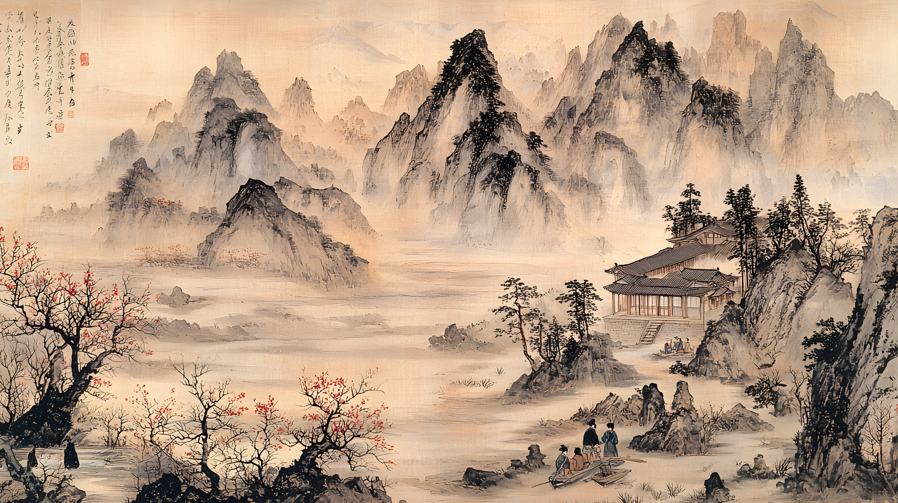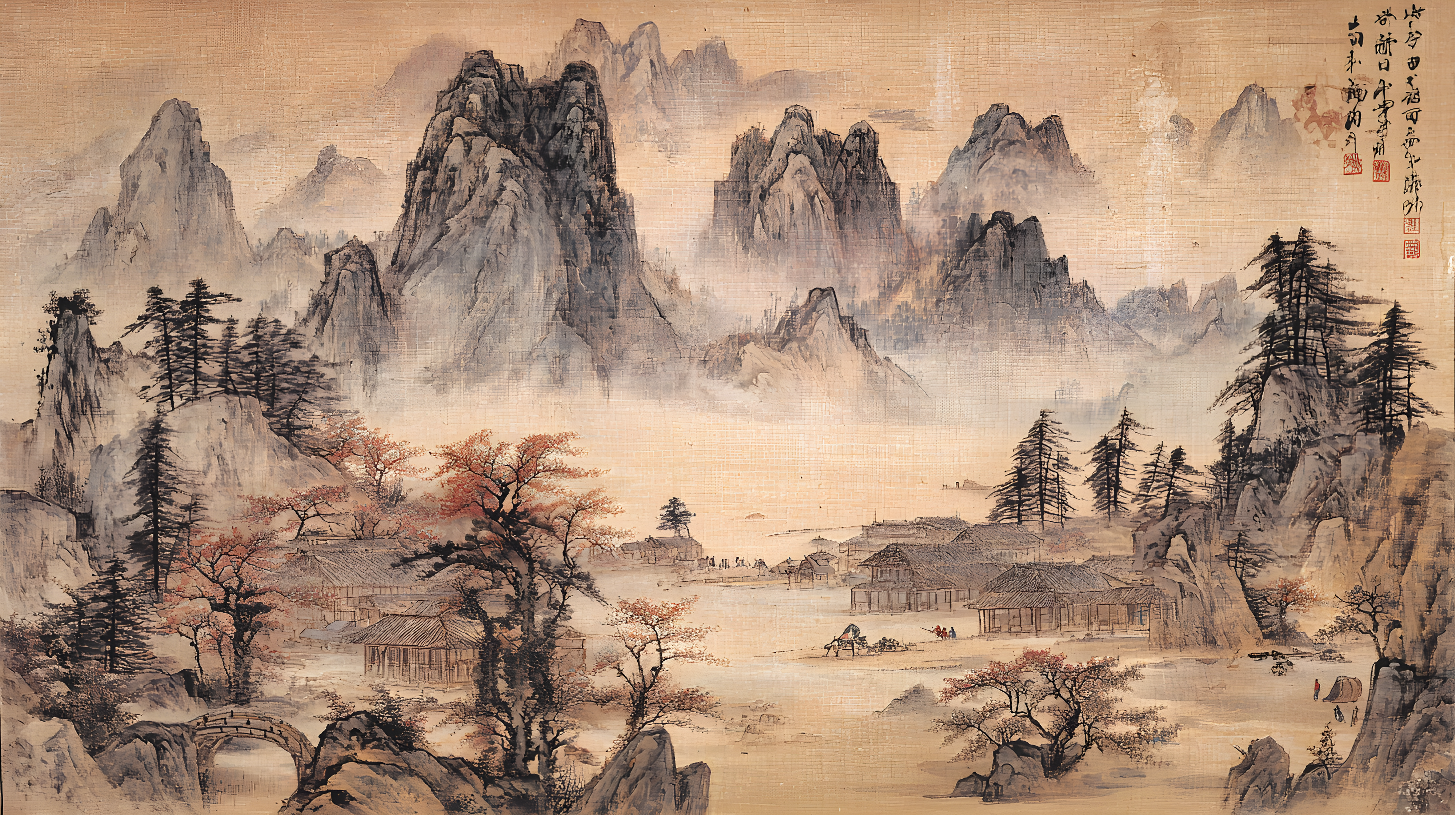 唐寅绘画风格,画面布局严谨整饬,造型真实生动,山势雄峻,石质坚峭,皴法斧劈,笔法劲健,墨色淋漓,充分展现了作者山水画的独特风格。