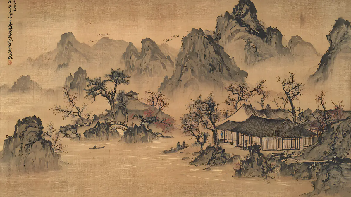 唐寅绘画风格,画面布局严谨整饬,造型真实生动,山势雄峻,石质坚峭,皴法斧劈,笔法劲健,墨色淋漓,充分展现了作者山水画的独特风格。