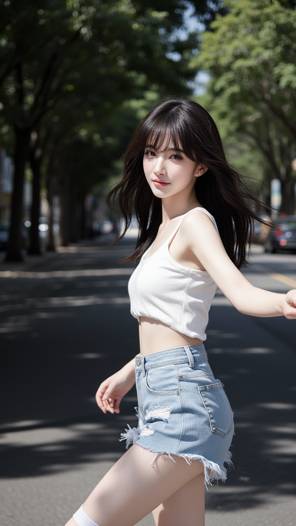 破洞毛边牛仔短裤女孩