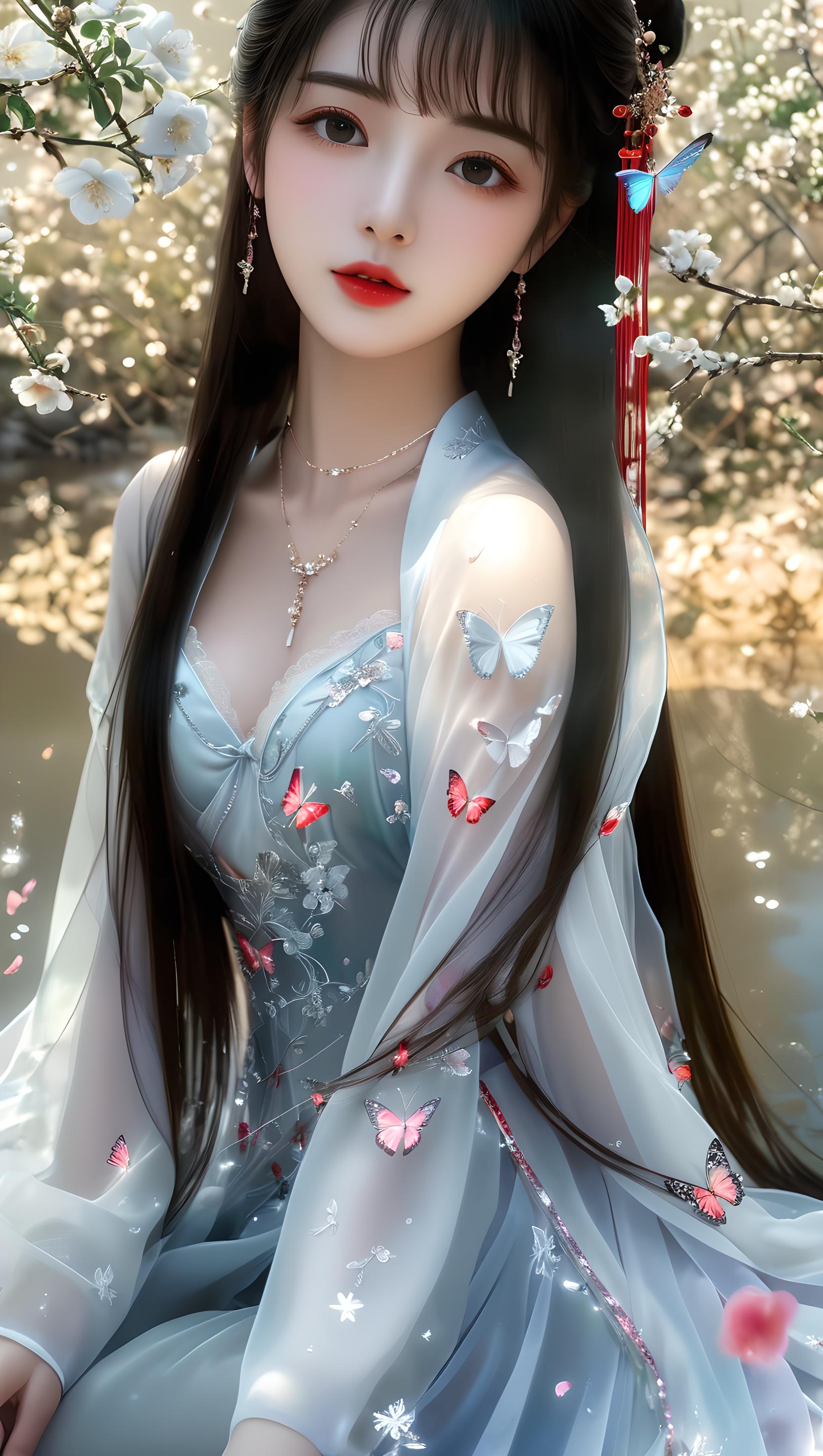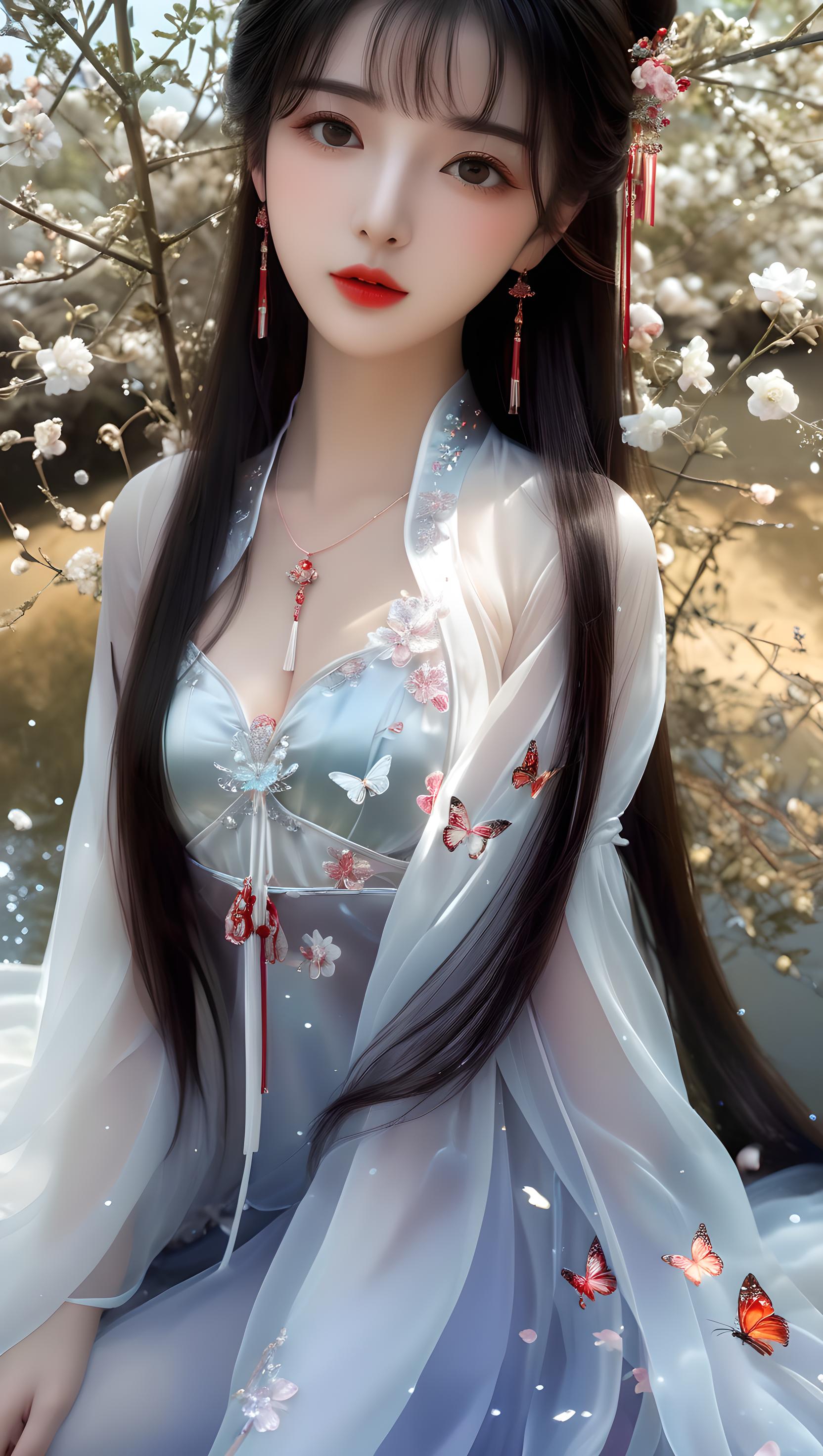 少女,挺胸丰满,多层透明丝绸全身镜,奢华丝滑亮红色雪纺泛光透视(幻彩,闪光,超薄,柔软,透明)液态汉服,云层,云彩,飞天的姿势,细节真实感,五官完美,特写明亮的大眼睛,胸部大,看着镜头,超细节,脸部细腻,超高清,真实皮肤,全身照,全身镜,高清照片,耳环
