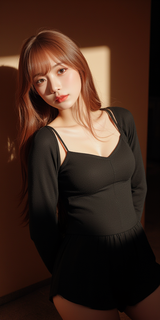 黑色套装的微胖女生