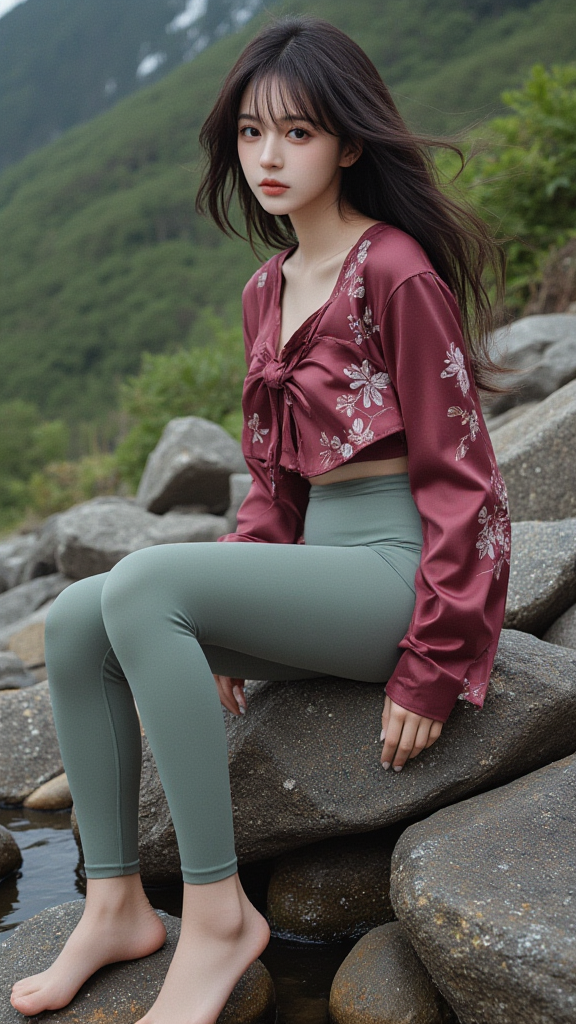 红色碎花上衣女孩