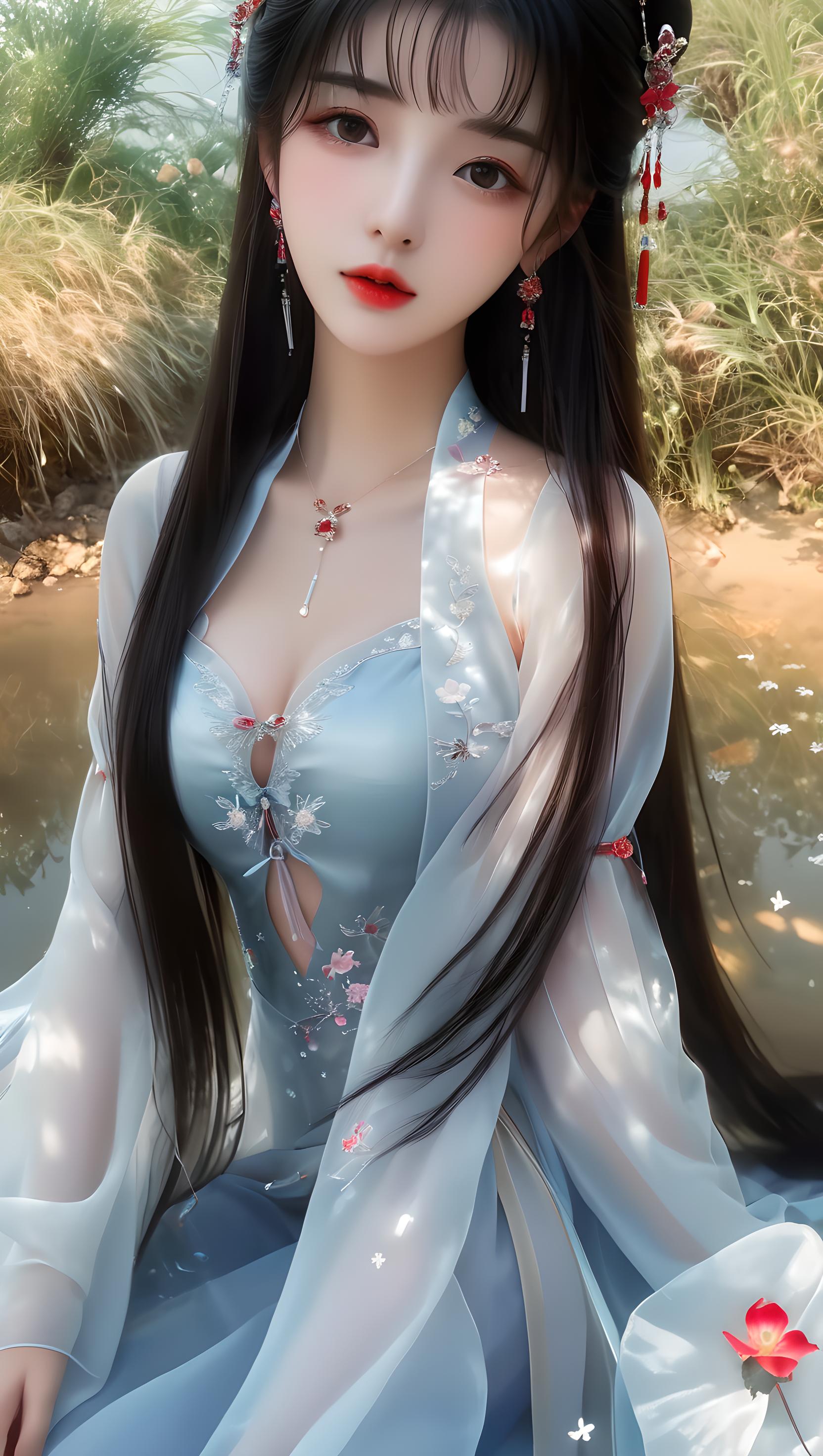 少女,挺胸丰满,多层透明丝绸全身镜,奢华丝滑亮红色雪纺泛光透视(幻彩,闪光,超薄,柔软,透明)液态汉服,云层,云彩,飞天的姿势,细节真实感,五官完美,特写明亮的大眼睛,胸部大,看着镜头,超细节,脸部细腻,超高清,真实皮肤,全身照,全身镜,高清照片,耳环