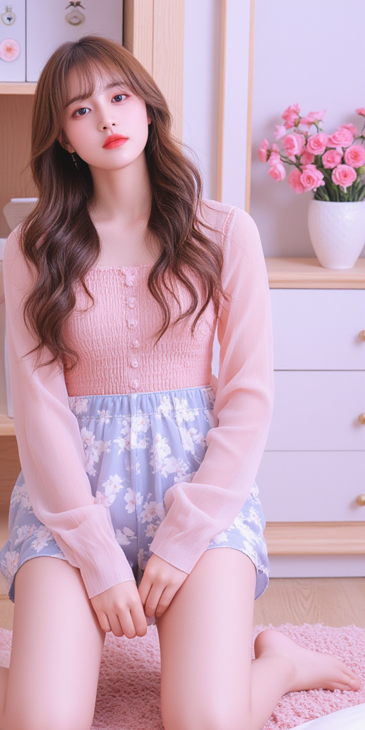 碎花短裤女孩