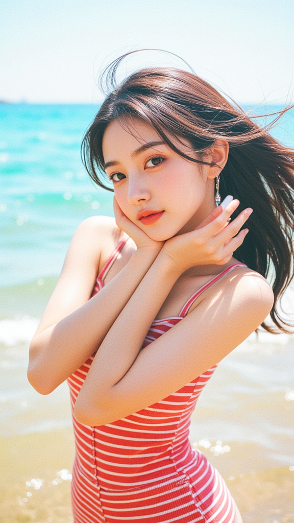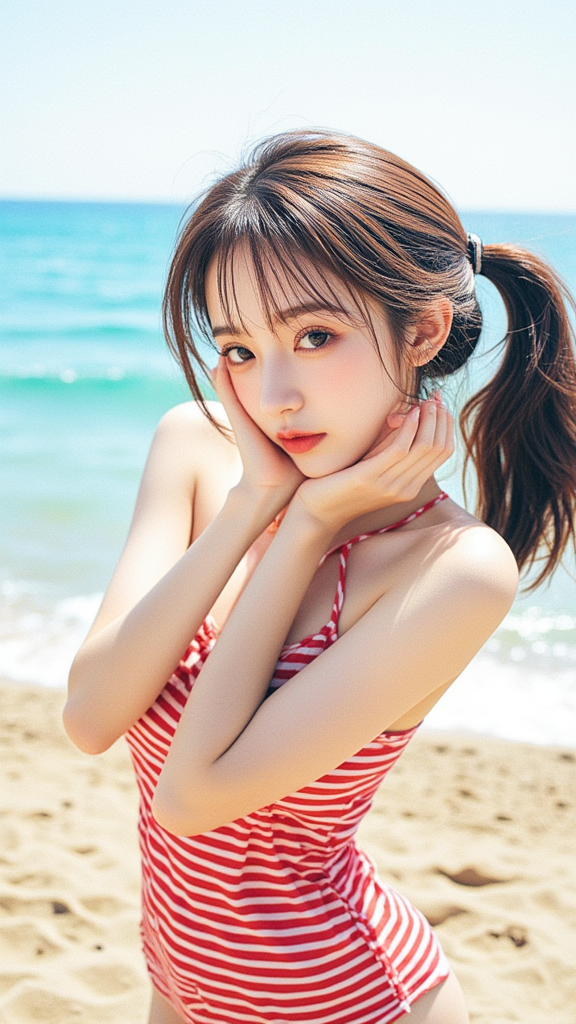 红色条纹背心女孩