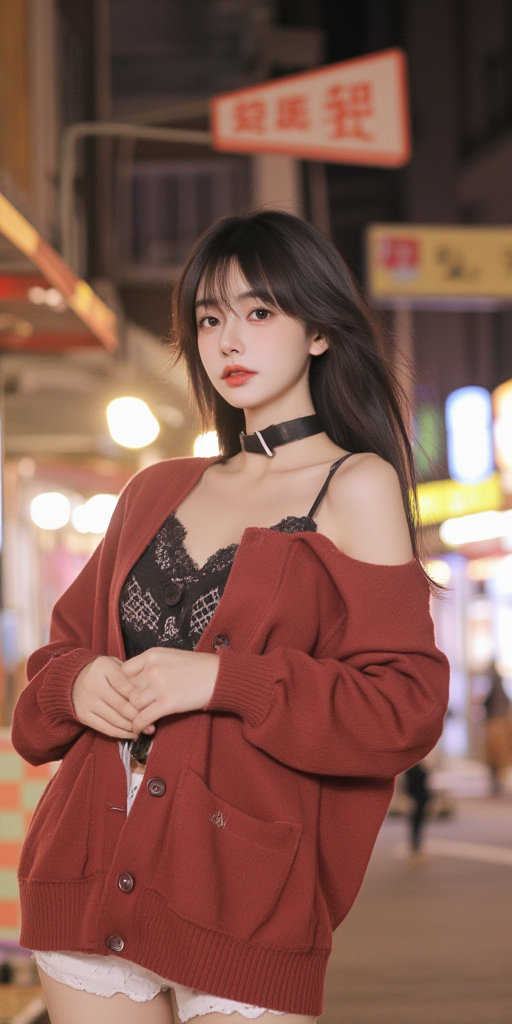 夜拍红色毛衣女孩