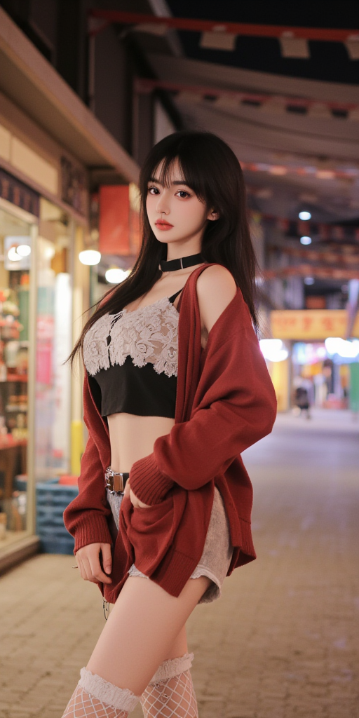 红衣牛仔短裤女孩