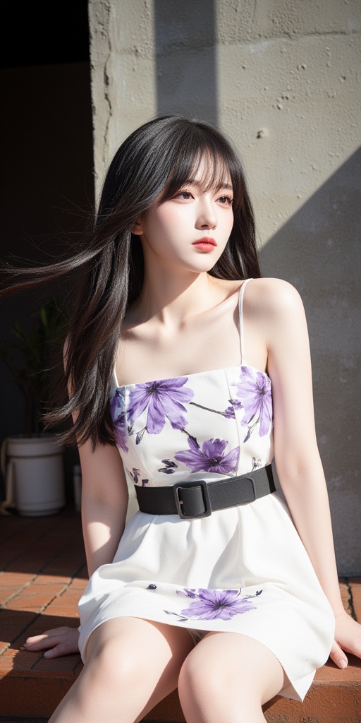 碎花裙露台女孩