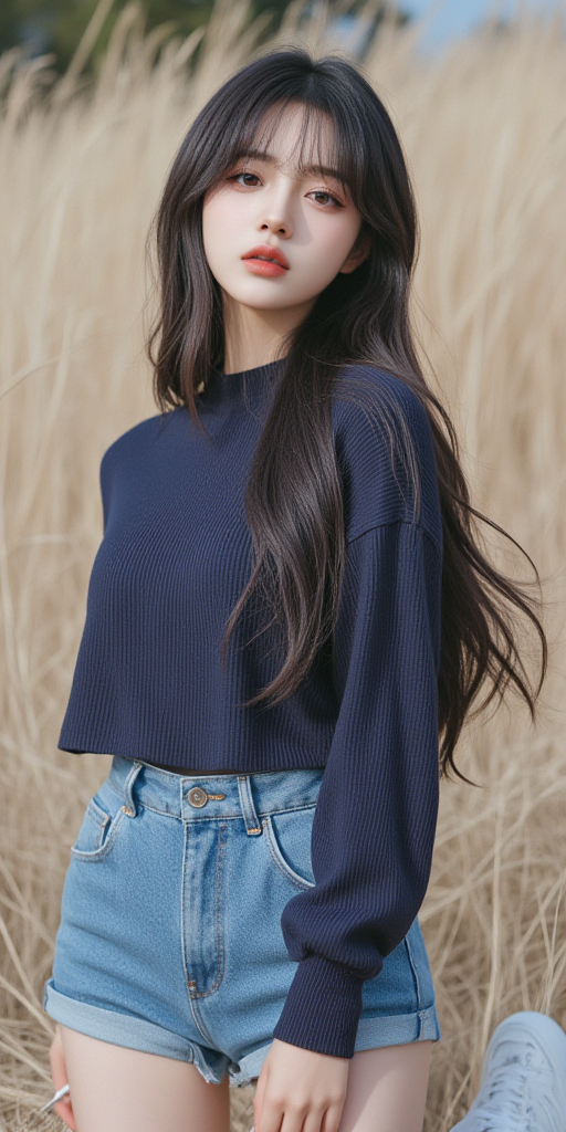 蓝色毛衣女孩