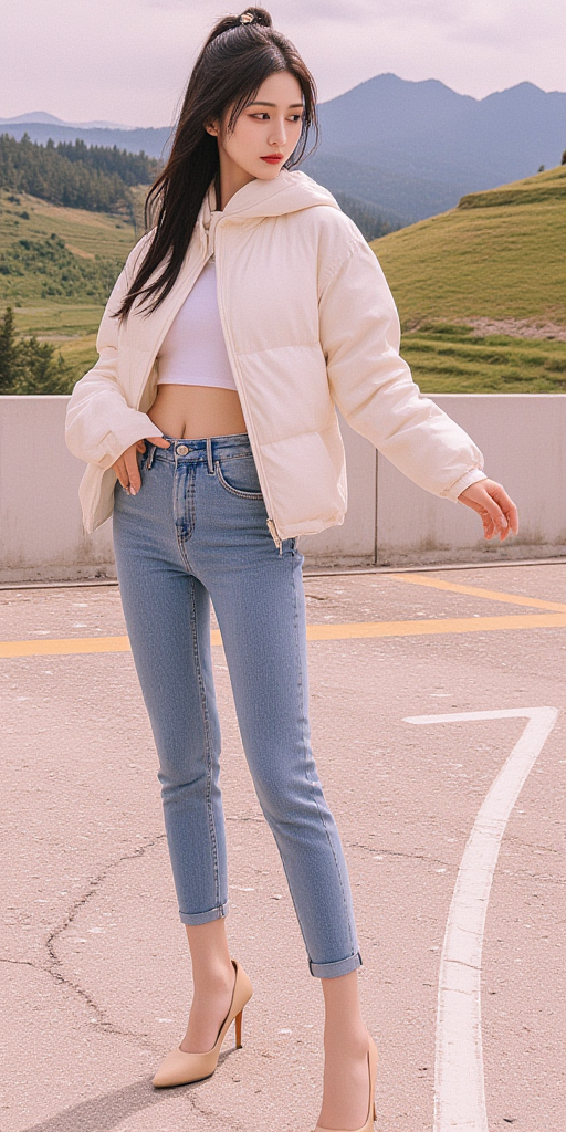 小脚牛仔裤女孩