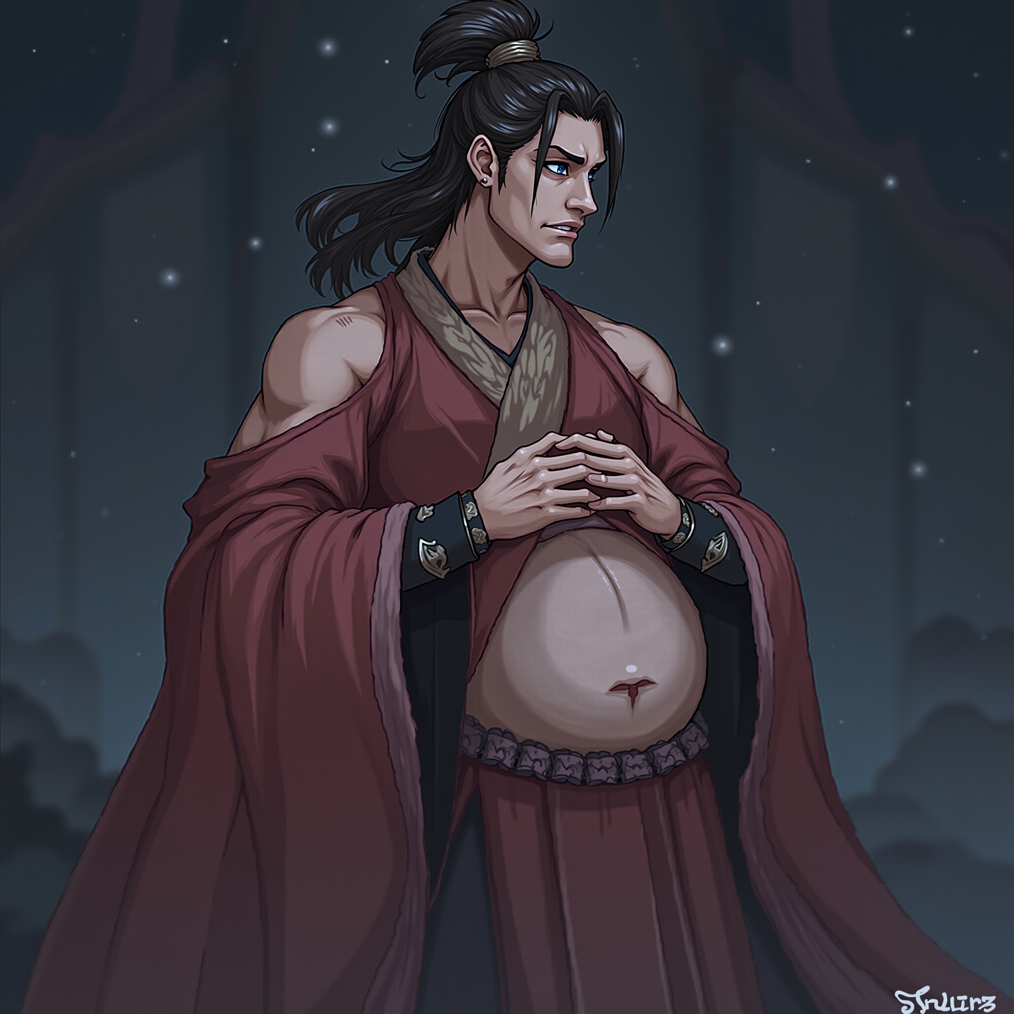 古风,仙界宫殿外,一个身穿红衣黑靴束发的俊美男人,他的穿戴很是贵气,表情有些痛苦,腹部像是快要临盆的女人一样圆滚滚,他手轻轻的搭在腹部看着宫殿里,哪里有这次他来想要见的人,云雾缭绕花团锦簇的殿外衬得这个俊美的男人很是寂寥,尤其他还因病肚子大起来,他是凤凰神君
