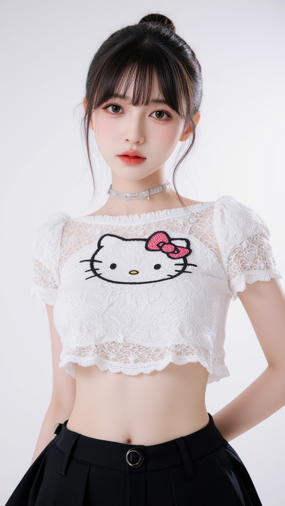 小猫印花T恤上衣女孩