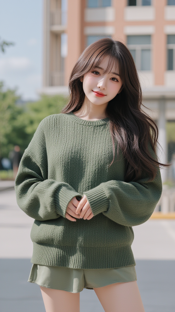 校园绿毛衣女孩