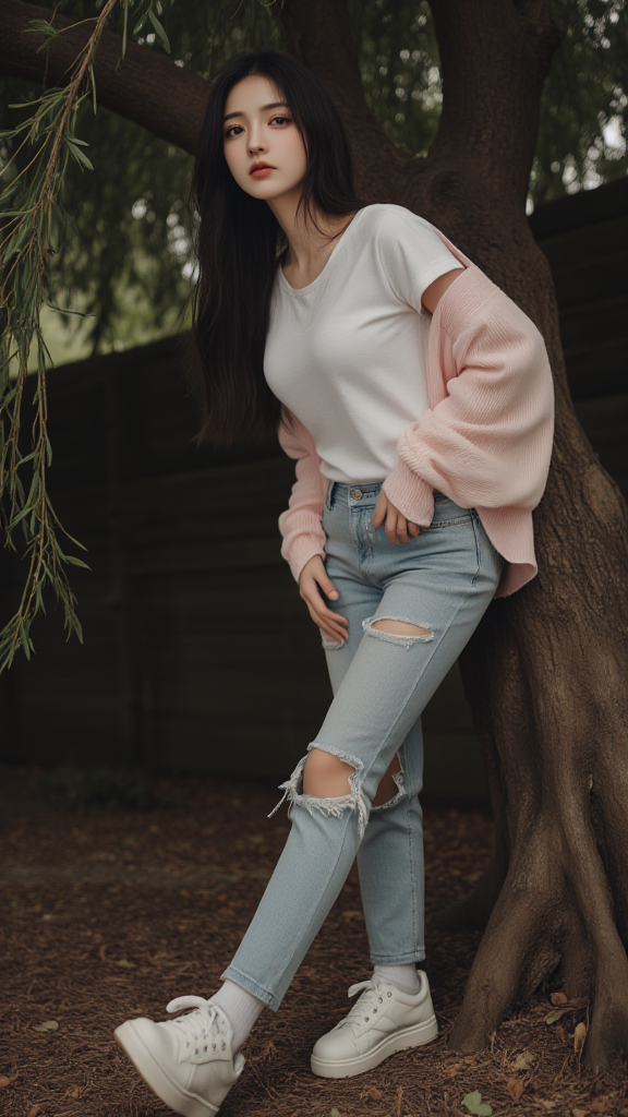 破洞牛仔裤女孩