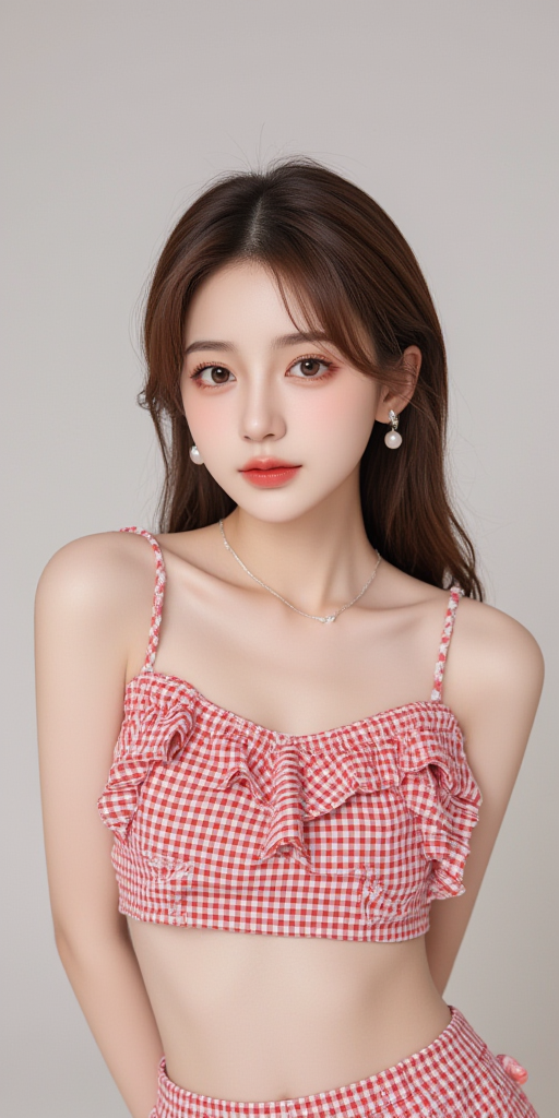 格子吊带上衣女孩