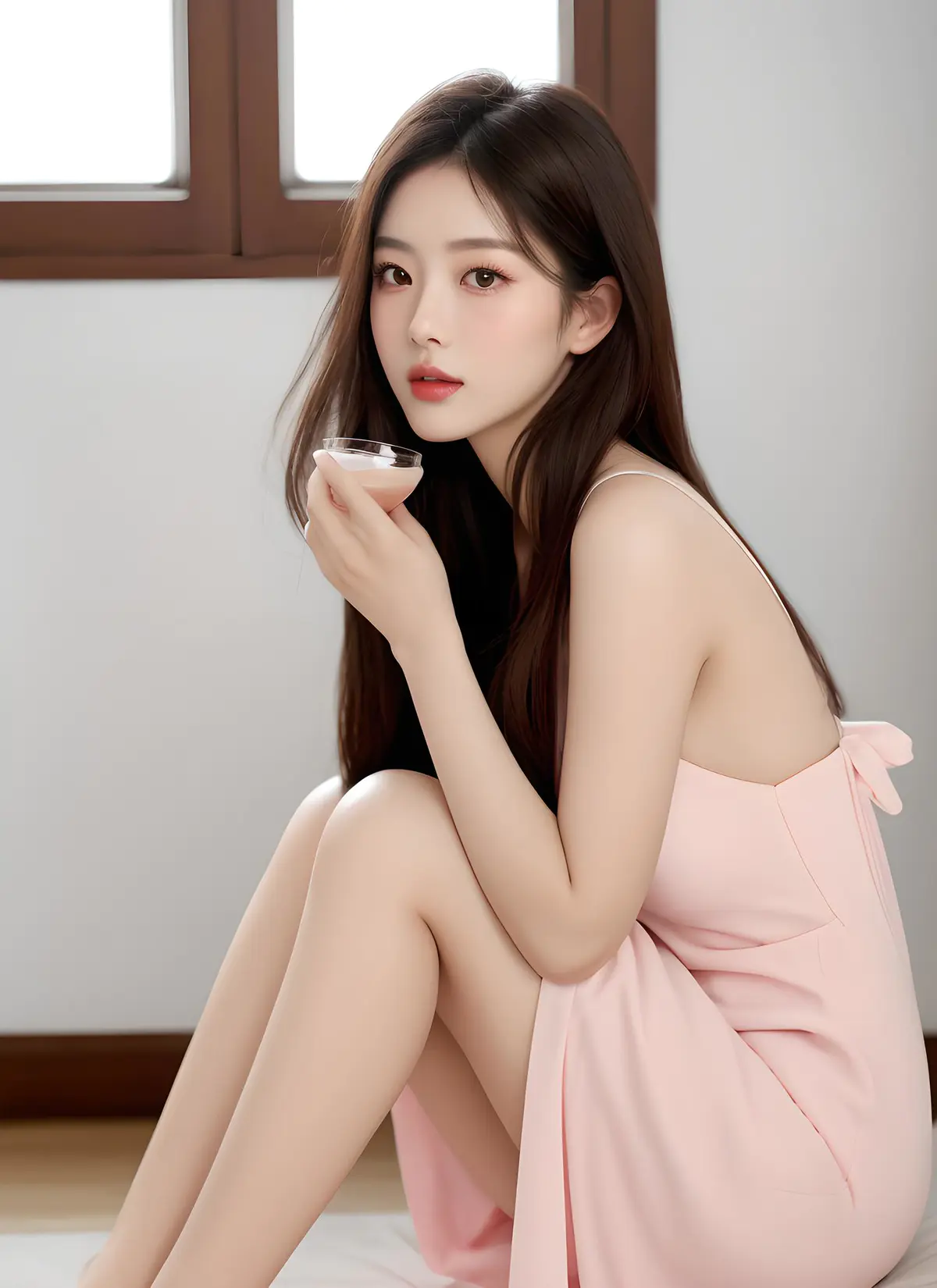 (1 beautiful young East Asian girl,20-26 years old,delicate face,oval face,big bright almond eyes,light brown pupils,double eyelids,soft makeup,natural pink lips,fair smooth skin,gentle temperament:1.3),long dark hair,middle parting,same face,consistent facial features,identical face:1.5,various daily outfits,loose and comfortable clothing,random casual style,diverse dresses,clean and modest style,natural and simple. Natural posture,holding transparent glass cup correctly,perfect hands,clear fingers,no deformation,realistic hand structure. full body shot,full body view,from head to toes,complete whole body. random clean daily background,matching colors,harmonious environment. Soft natural warm light,consistent lighting,unified skin,real-life photo,ultra-realistic,8K,high detail,sharp focus,cinematic lighting,eye level,fixed lens,shallow depth of field,clean composition,elegant aesthetic,professional DSLR,same person,consistent portrait.