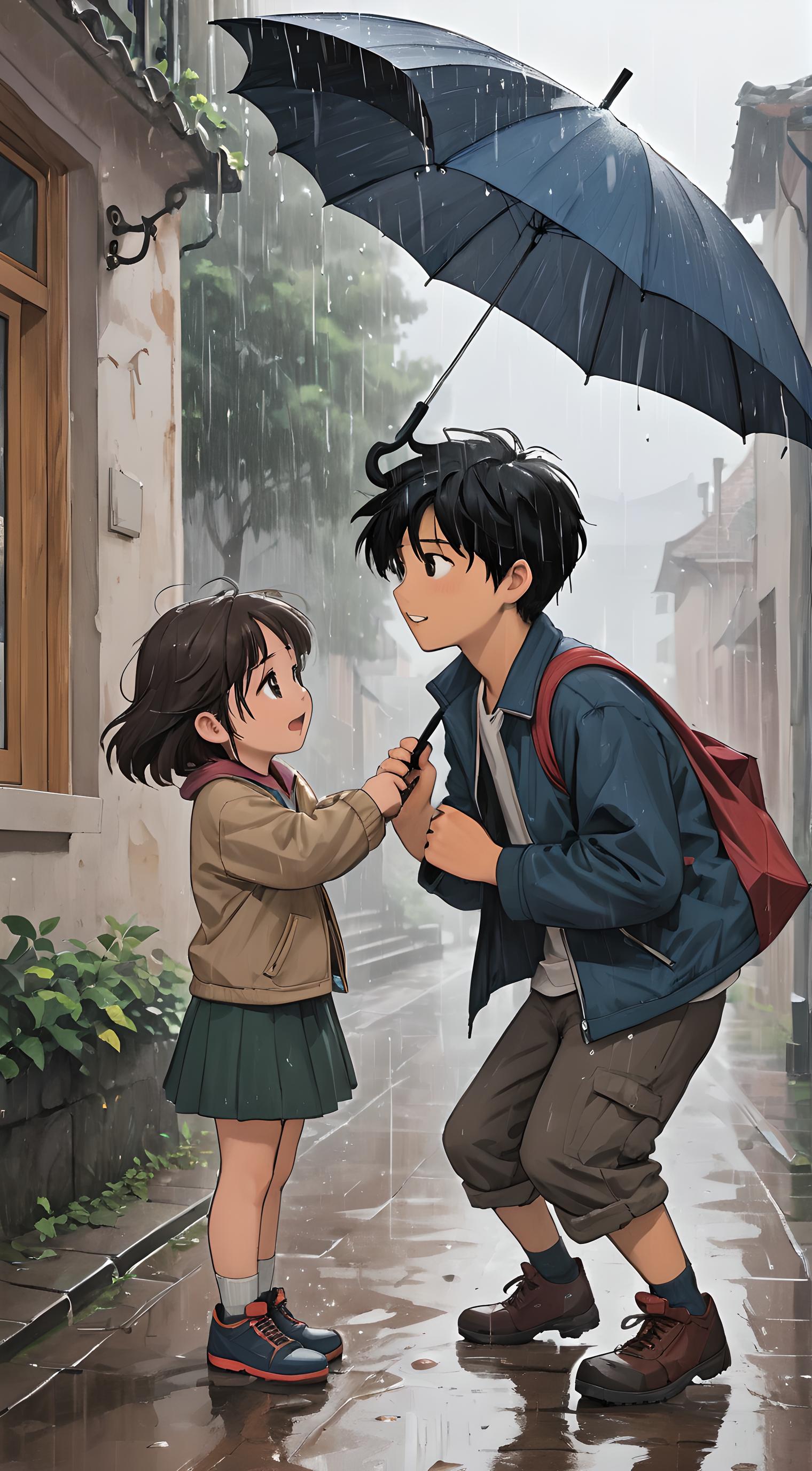 伞给你,我跑很快,不怕雨。
