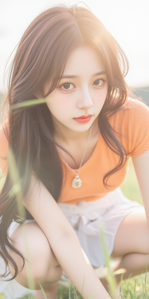 户外草地上的女孩