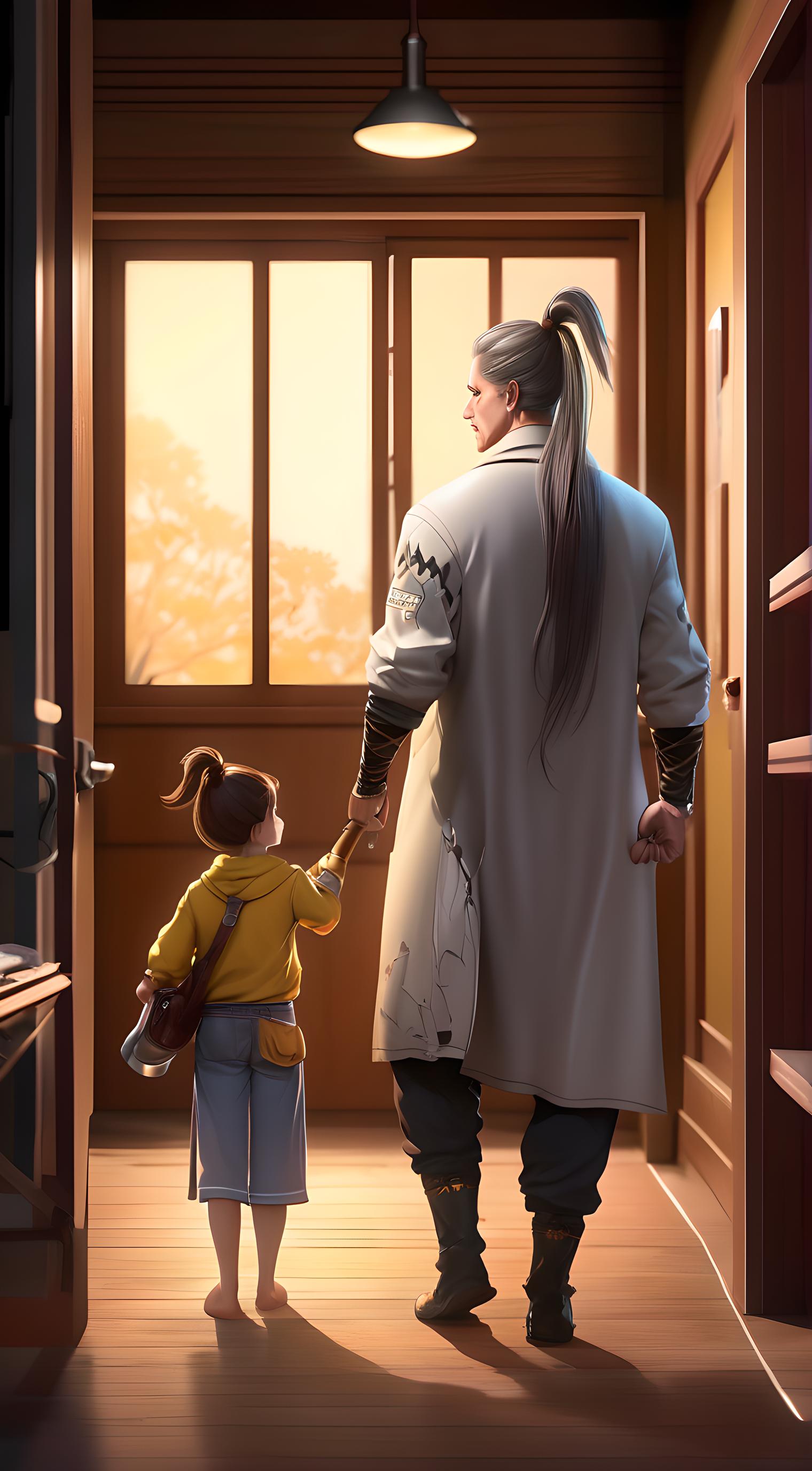 国漫风格,9:16竖屏,现代都市,深夜楼道,扎高马尾的年轻女生背帆布包,表情从恐惧转为惊讶与安心,邻居大爷拄拐杖站在她身前,挡住身后醉汉,大爷手里攥着防狼手电筒,暖黄灯光打在两人脸上,楼道氛围温暖明亮,低饱和暖色调,漫画分镜,治愈温情氛围,8K高清