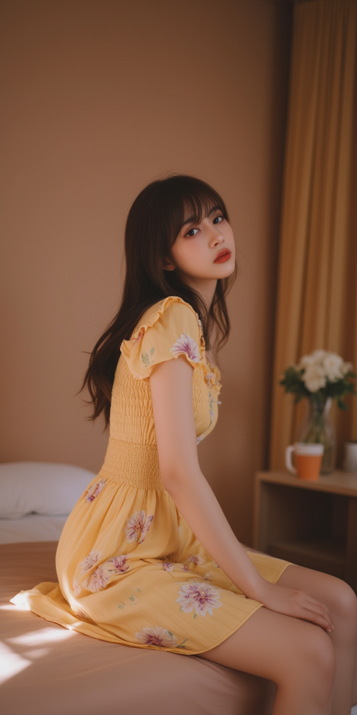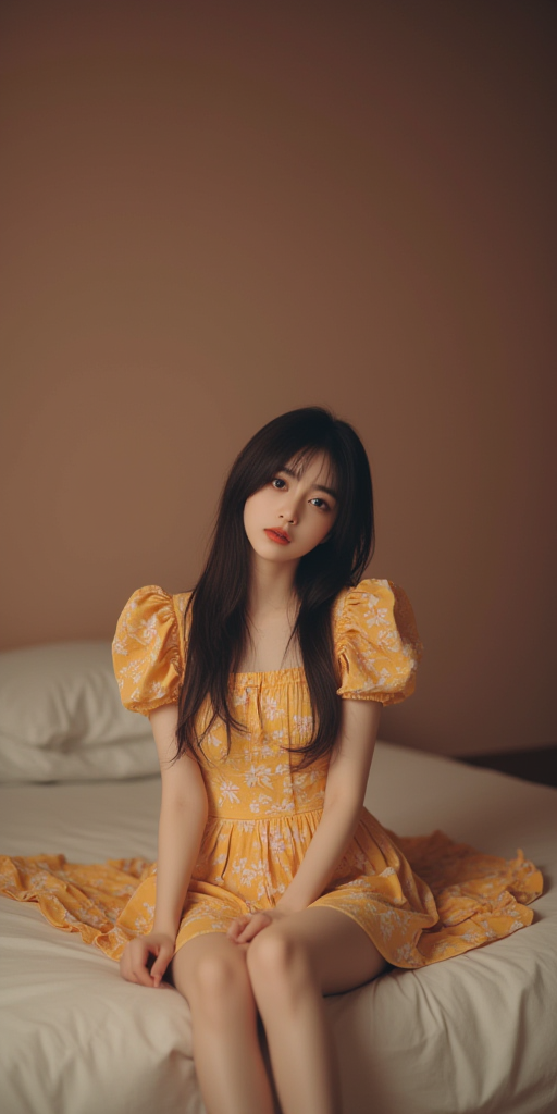 碎花黄裙子女孩