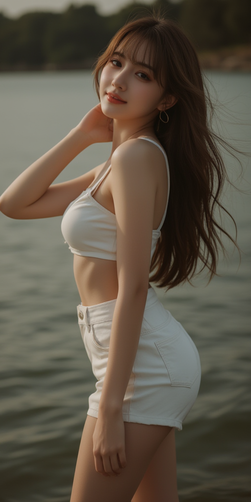 白色牛仔短裤女孩