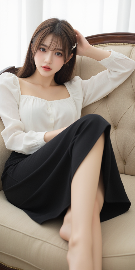 沙发黑裙子女孩