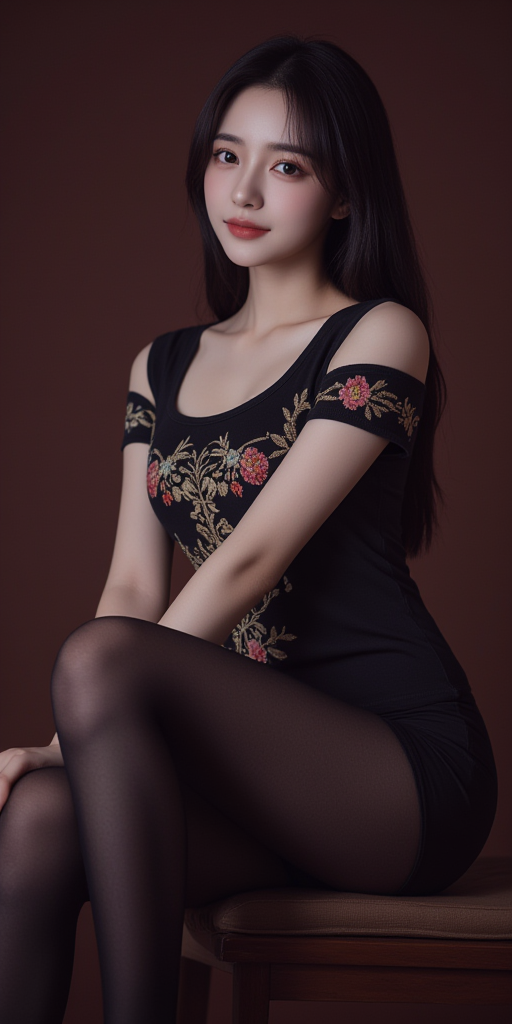 黑色长腿袜子女孩