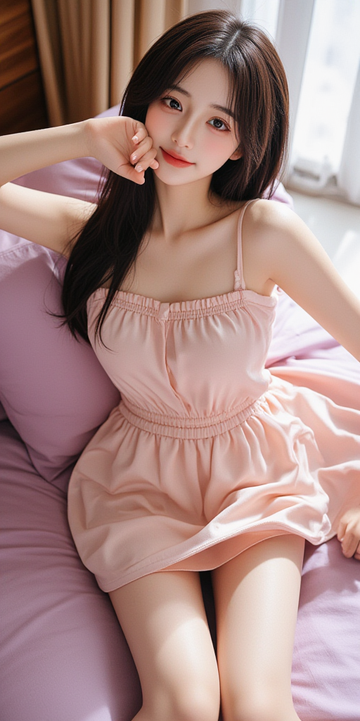 居家少女粉色短裙子