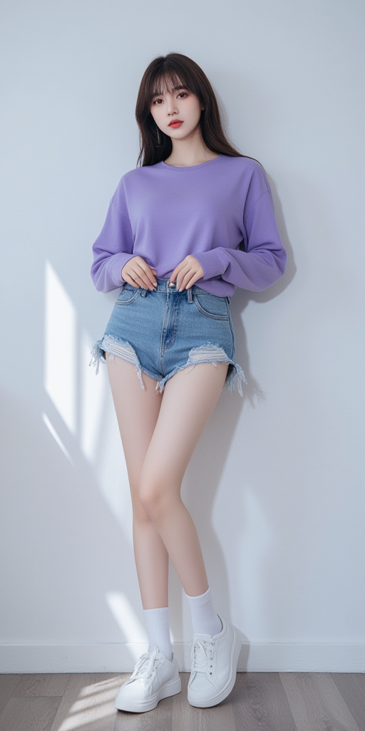 毛边牛仔短裤女孩
