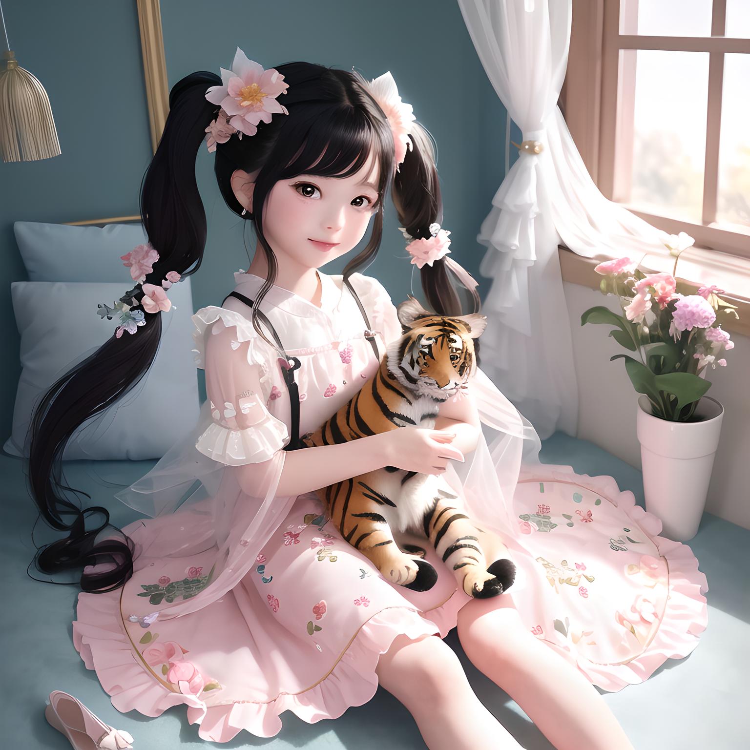 小囡囡是一个五六岁的小女孩,粉雕玉琢,圆圆的小脸蛋,大眼睛乌黑明亮,睫毛浓密,扎着两个小揪揪,穿着小花裙,脚踩绣花鞋。她笑起来天真烂漫,露出两颗小虎牙,像个瓷娃娃,让人忍不住想抱抱。