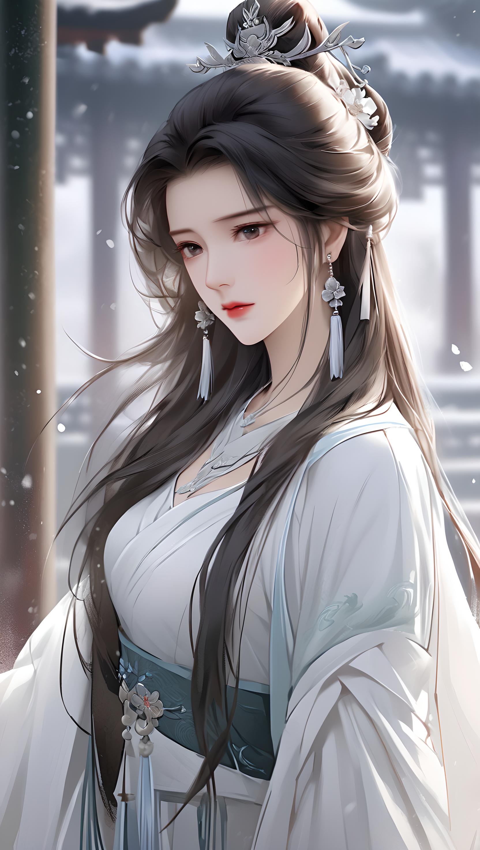 国漫古风,清冷绝世古风女子,素色浅白衣裙,身处冷宫庭院,眼神倔强隐忍,黑发温婉造型,细腻古风上色,竖版9:16,漫画分镜风格,高清无水印