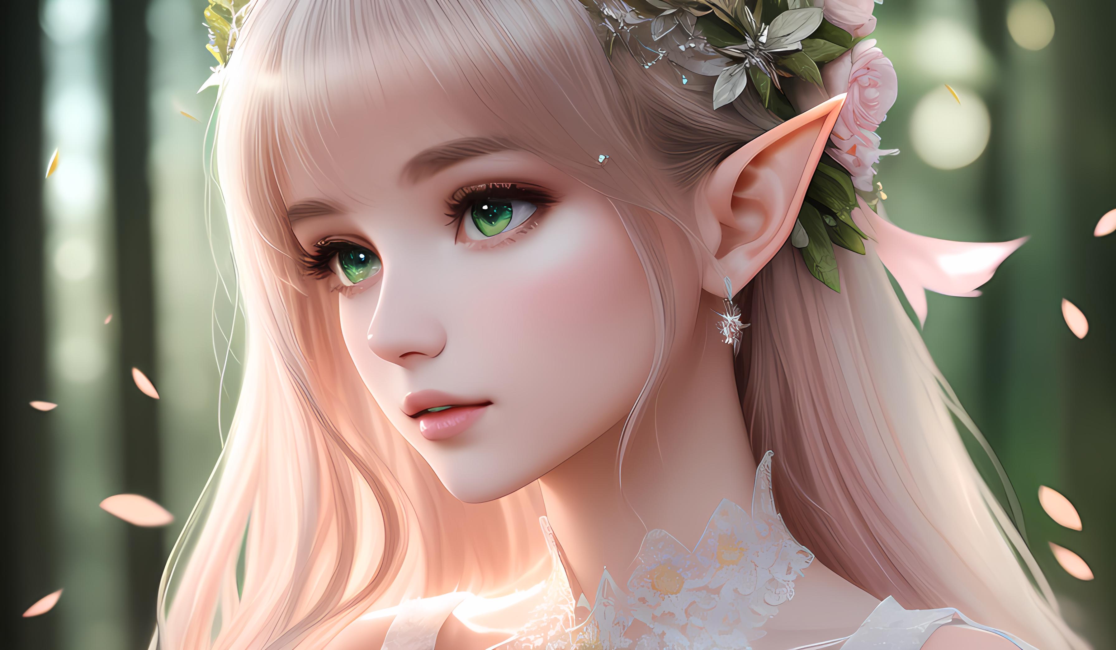 极致细节,逼真写实, 超写实,16K画质,逼真细节,大师作品,凌乱的头发,完美身材清纯可爱的少女,娇嫩洁白无瑕的脸蛋,细腻精致的五官,娇嫩的粉唇,完美的身材,美丽精致的白色+绿色+粉色服装,迷人的气质,精致的CG,高画质,16K,优美的背景,阳光阴影,精致的发饰,(精灵),精致的面部刻画,全身 ,上半身特写,粒子特效,精致的手指,景深,细节复杂,华丽的薄纱裙,梦幻,深林背景,露水,晶莹剔透,闪亮的皮肤,动态模糊,详细光线,蕾丝