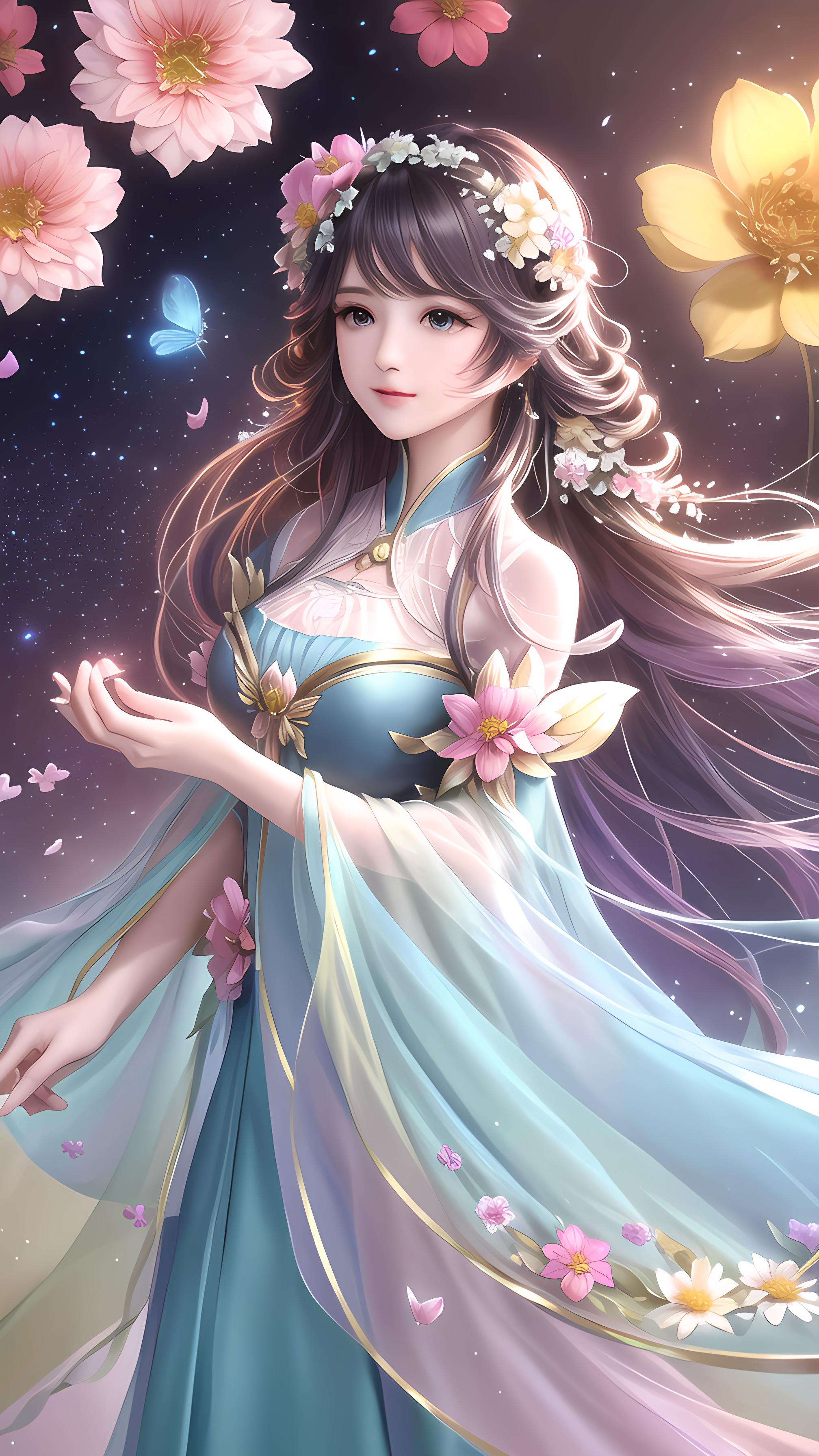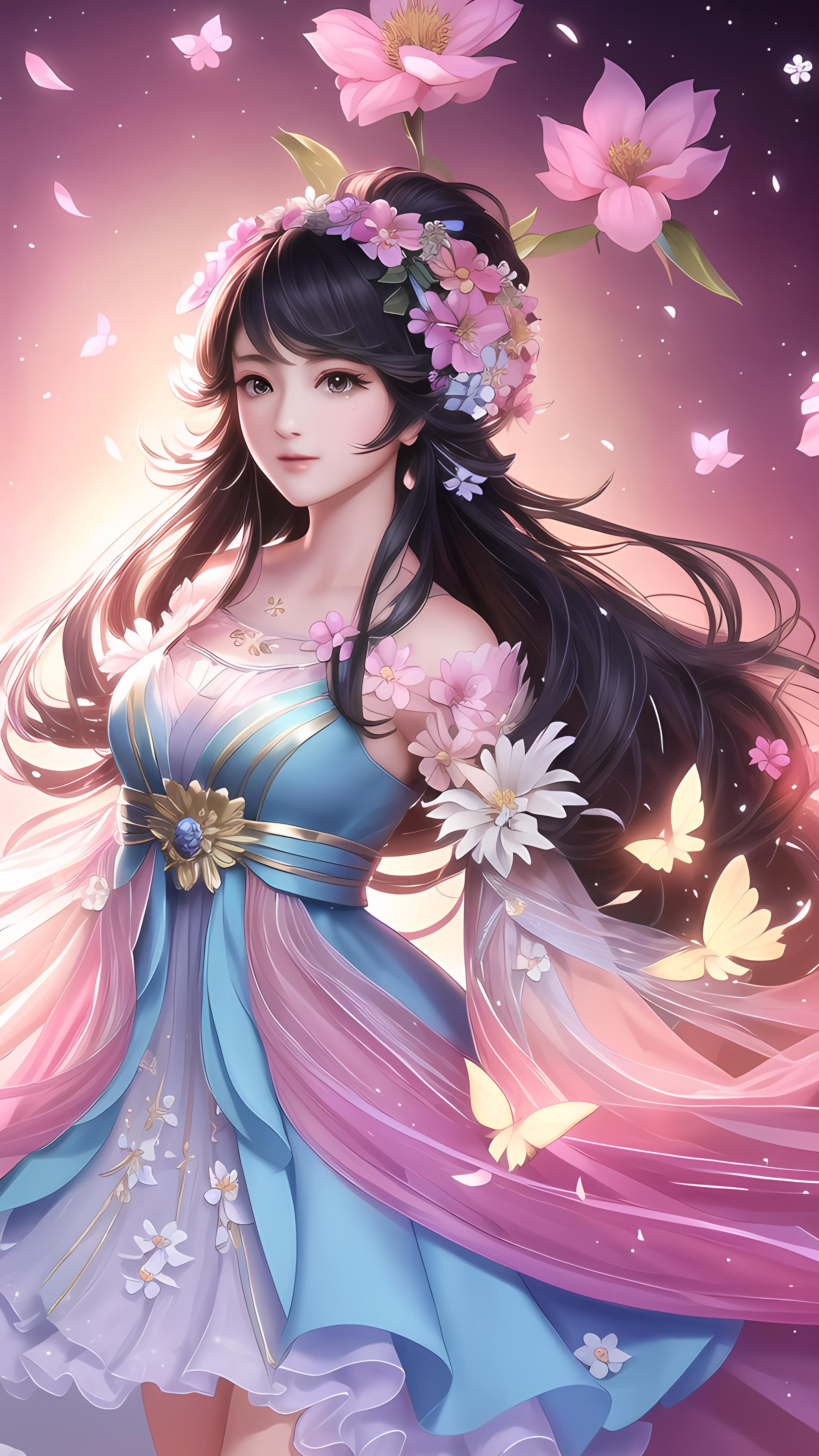 beautiful detailed flower, beautiful detailed eyes,hyper detailed,flower,hyper quality,,eyes,flower and hair is same color,beautifuly color,face,{{{{{her hair is becoming flower, flower,hair,flower,butterfly,}}}}},{{{{1girl}}}}kawaii,,{{{high details, high quality}}},{{{back light}}},{{hair and clothes is flower}},{{{upper body}}} ,high quality,hair with body ,webbed dress, upper body, flower leg, flower hands,body with flower, {{ flower with clothes}} , dress with flower, , light particles,black background, {{{{Hair with flower}}}},small breast with flower,big hair with flower,{{floating hair with flower,floating}}1girl,small breast, marbling with hair and clothes, looking at viewer,{{original}},{{arm down}}, {{paper cutting}}, black background, flower forground, {{hair with flower}},{{{{{highres}}}},} hair with flower,hair with flower ,hair, wavy hair ,diffusion lighting, abstract,Butterfly with body, flower with hair, her hair is flower,big top sleeves, floating