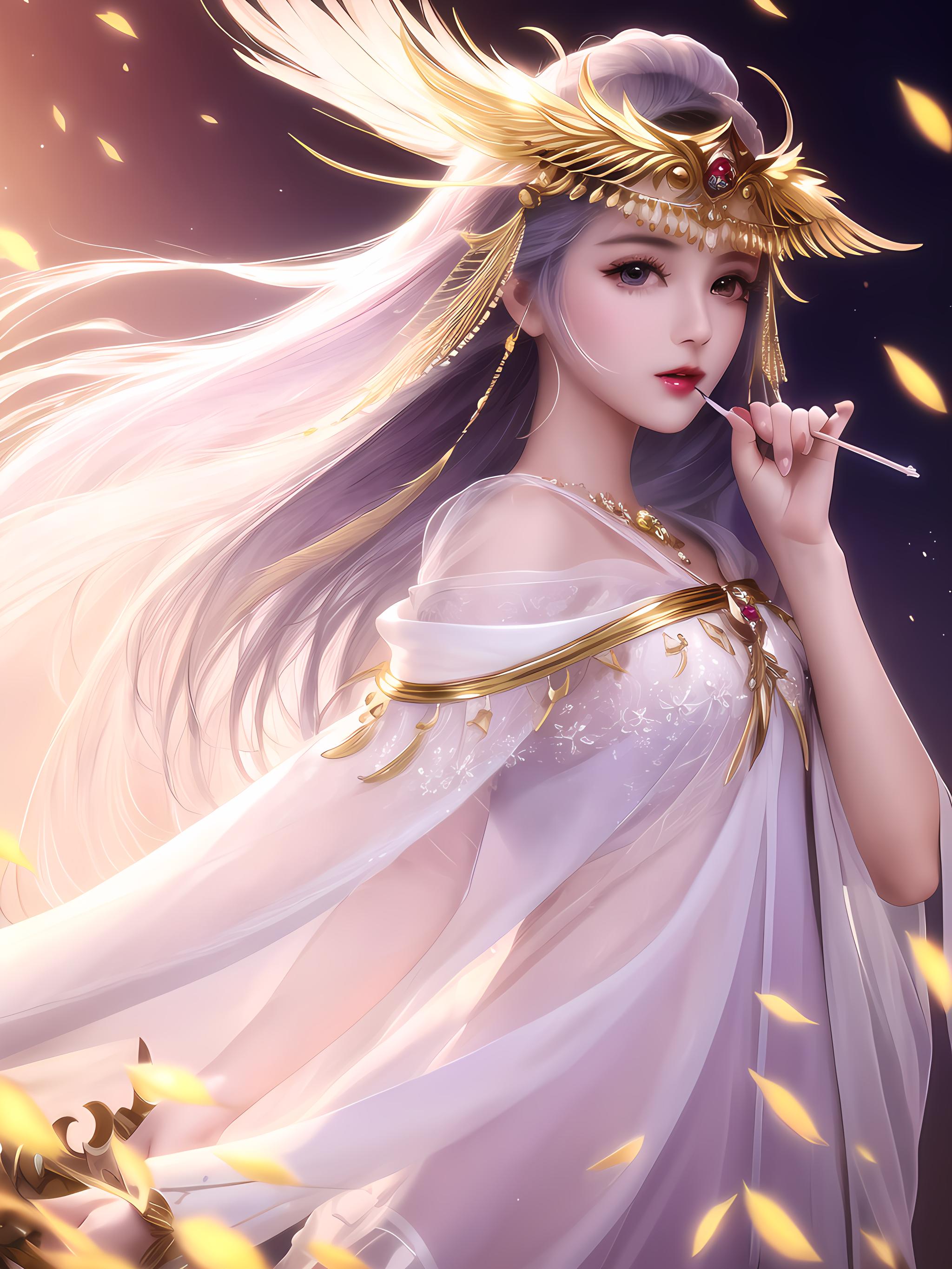 最高画质,杰作,精美的CG,绝世美女,真人,写实,精致美丽的面部特征,可爱的女孩,精致美丽的天使,精致复杂的白色羽毛,精致的盘发,白色的服装,完美的,浮白色羽毛头饰华丽的高光,绝美的,迷人的,闪耀的,完美,超清,16k,高清,流光,天空,白云,阳光,电影灯光,渐变,颜色飞溅,多彩,微风,半身照特写,近景,大师作品,最好画质,更高质量,高细节,超高分辨率,美丽的眼睛,樱桃唇,果冻唇,梦幻,