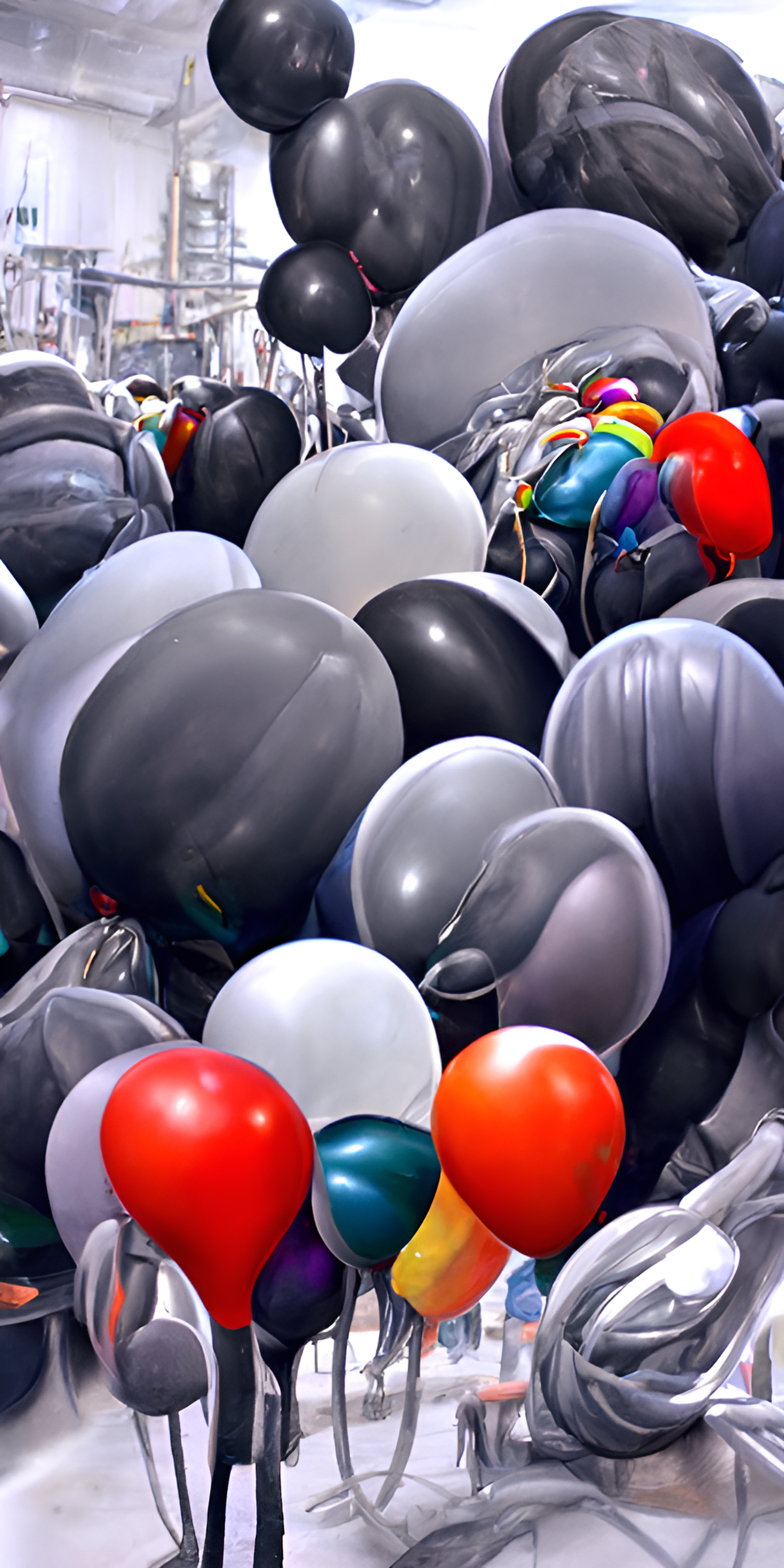 无数个灰色的气球 中间一个彩色的气球
