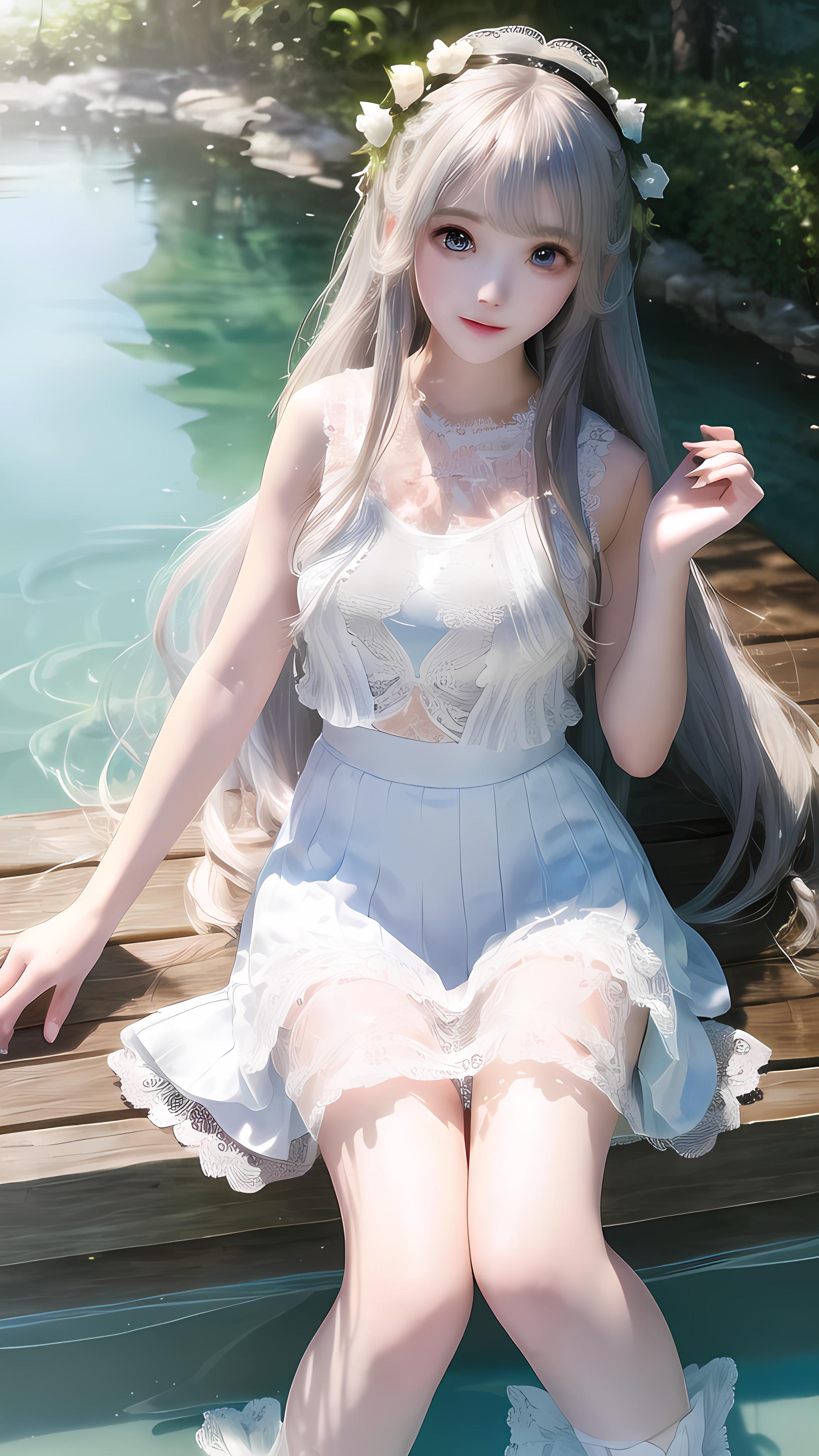 湖边少女