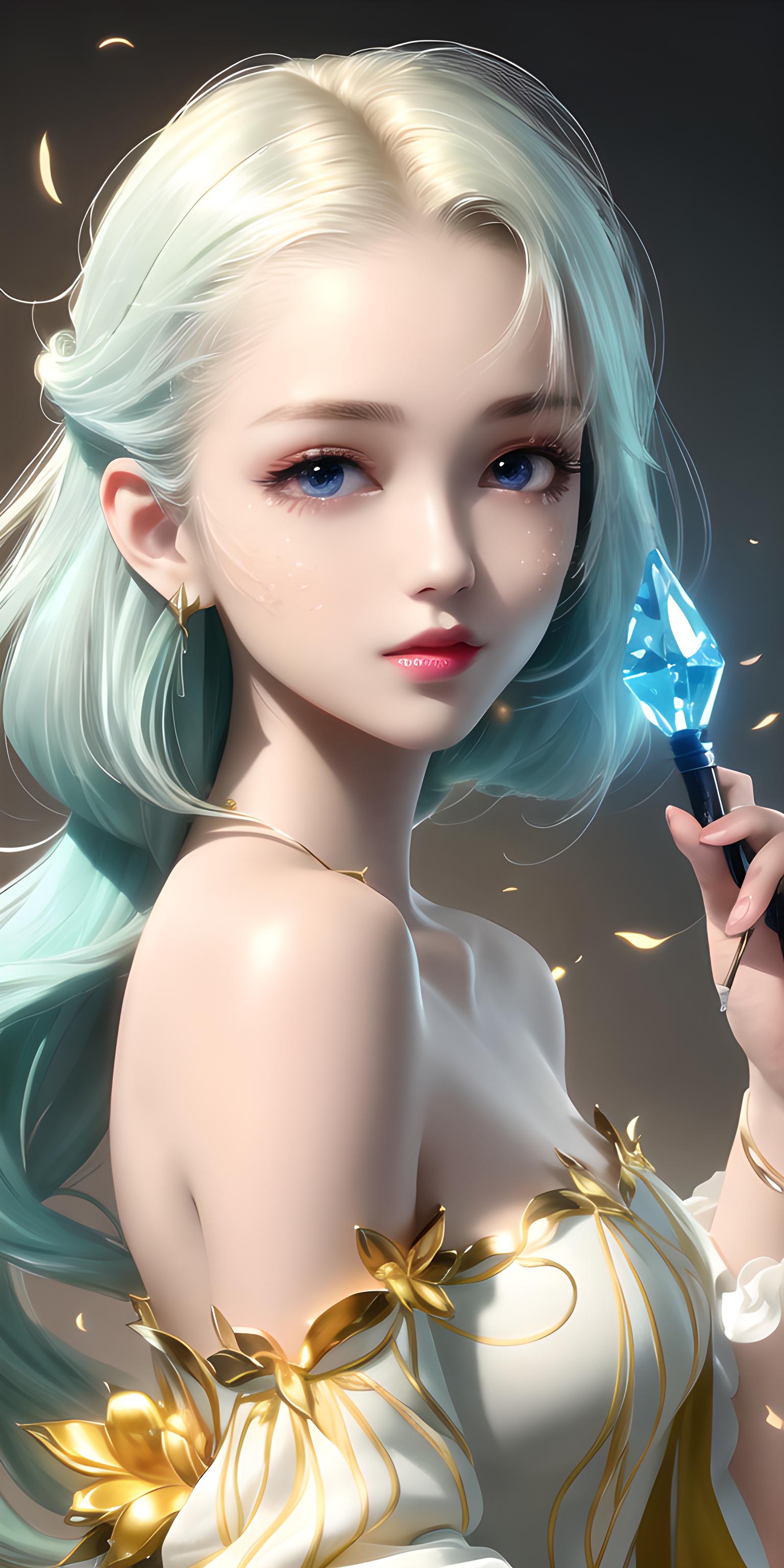 水晶黄渐变色长头发美女